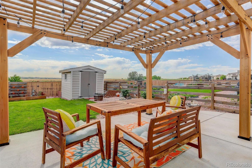 Reunion home with a gorgeous backyard with privacy. This home boasts 5 bedrooms, one being on the main floor and a full bathroom for convenience. The main floor is an open concept with spacious room in the living, dining and kitchen. You're welcomed into the home with updated engineered luxury vinyl flooring that is carried throughout the main living areas of the home. Updated light fixtures throughout the home that elevate the look and feel of the home. In the kitchen there are upgraded granite countertops along with a newly installed backsplash! There is plenty of counter space and cabinet space for storage and a big walk-in pantry. The main floor finishes out with a mud room coming in from the garage with another coat closet. The upstairs has a beautiful loft with bookshelves making it a great place for an office, kids playroom or hangout area. The primary bedroom is located upstairs with an en-suite that has double sink vanity with updated quartz countertop, a tiled shower with a bench, linen closet and a custom wardrobe organizer in the walk-in closet. There are two more bedrooms upstairs, a full bathroom with updated flooring and quartz countertop and the laundry room with included washer and dryer. The finished basement has a giant great room that has room for a gym and family room. Additionally there is a full bathroom and large bedroom with an over-sized closet. A dedicated storage room downstairs is perfect for all your extras. The backyard Oasis has a full length concrete patio and pergola to sit out on and enjoy your beautiful, peaceful yard. The shed provides extra storage as well!