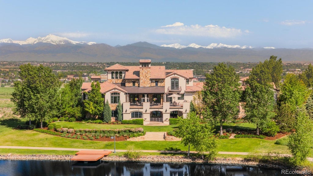 On a private lakefront acre at the highest vantage point in Broomfield’s most prestigious gated enclave, 1820 Mallard Drive is a residence of rare distinction where architectural brilliance, natural grandeur and refined comfort converge in flawless harmony. With panoramic views of the Rocky Mountains and a shimmering private lake as its ever-changing backdrop, this 11,000 square foot estate is a triumph of design and lifestyle, curated for the discerning few. A tree-canopied approach winds past still waters arriving at a circular drive, sweeping archways and grand portico that rises like a timeless sculpture from the verdant landscape. Every artisan detail from the grand gallery hall and soaring timber-beamed ceilings to the hand-chiseled stone and luminous lighting has been conceived to evoke awe and inspiration. The reimagined William Ohs kitchen is a culinary celebration of form and function, wrapped in Taj Mahal quartzite and bespoke walnut cabinetry, anchored by a chef’s suite of Sub-Zero and Wolf appliances. Impressing with 22-foot ceilings and a monumental stone fireplace, the great room invites both intimate gatherings and grand entertaining. Walls of glass slide away to reveal heated terraces with fireplaces and unforgettable views. The main level primary suite is a private haven of indulgence, with a lake-facing soaking tub, dual water closets, steam shower, morning bar and couture-worthy dressing rooms. Upstairs, two luxe suites enjoy their own vistas, while the third-floor Sky Loft offers a 270° panorama perfect for creativity and reflection. The walk-out lower level is a destination in itself with billiards and media lounges, a stunning bar, spa room, private gym, and guest quarters. Beyond, layered patios and terraces, a putting green and private dock invite outdoor living in all seasons. With seven garage bays, Savant smart home integration and a setting that bridges Boulder and Denver, this is not merely a residence, it’s a legacy of artful living.