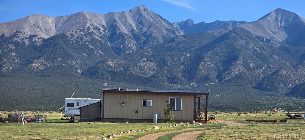 You can't beat the views!! Wake up to the breathtaking view of Mt. Blanca in this 1008 sq. ft. home waiting for your personal touch. This well-built house features 2 bedroom/bonus room, 1 bathroom, a living room with a unique bar area, and a minimalist kitchen. There's also an attached bonus room that can be the second bedroom or additional living space, along with an adjoining utility room. Relax and unwind on the covered front porch and enjoy the serenity and peacefulness of the valley. Additional outdoor features include a fenced chicken coop, a walk-in greenhouse built 7 feet into the ground for excellent stability, and a gated circular driveway with fencing along the road frontage. The current owner rents out space on the property for overnight dry camping guests at $30 per night, offering an opportunity for extra income. This home has incredible potential, with only a few finishing touches need. Call listing agent today to schedule a showing!