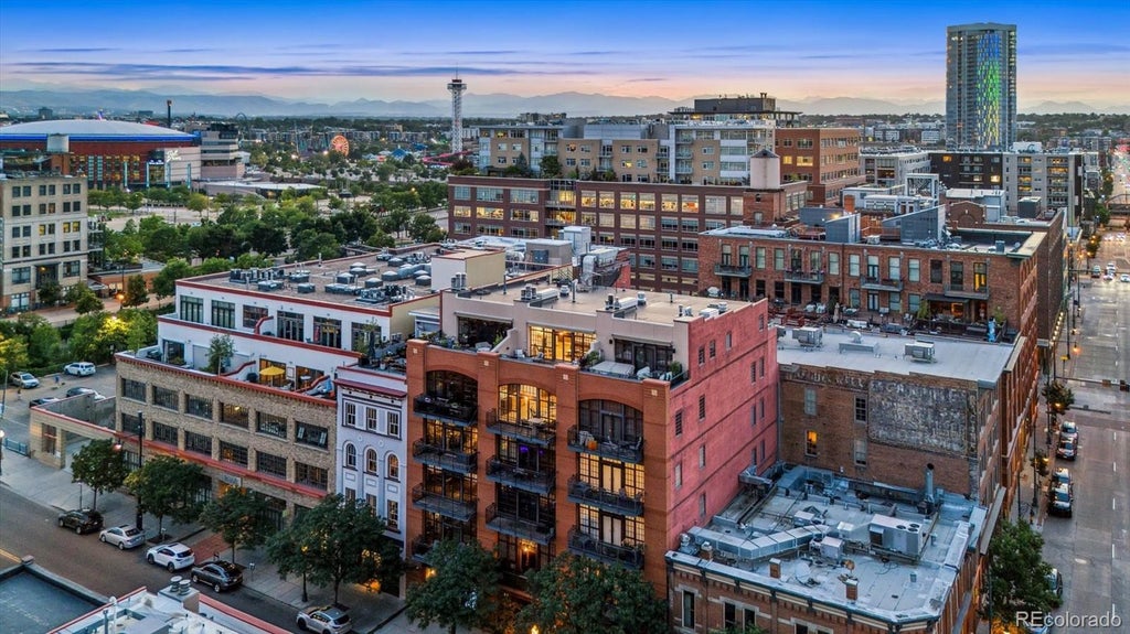 Welcome to Penthouse 503 at Wazee Wire Works, a masterfully remodeled 2-bed, 2.5-bath, 2,567 sq ft loft blending historic charm with cutting-edge luxury. This isn't just a remodel; it's a complete, professionally designed renovation down to the studs with no expense spared. All staging furniture is now also included as part of the sale! Located in the iconic Wazee Wire Works (one of just 17 exclusive units) this top-floor penthouse offers panoramic views of Coors Field, the Downtown Skyline, and the Rocky Mountains. A five minute walk to Ball Arena this unit stands to benefit from the future Ball Arena redevelopment. This penthouse feels like a single-family home, featuring floor-to-ceiling windows and a modern open-concept floorplan. The gourmet kitchen is a chef's dream, complete with top-of-the-line stainless steel appliances, custom cabinetry, and a massive island, ideal for entertaining guests. Retreat to the primary suite (the entire top floor), a private sanctuary boasting an electric fireplace and wet bar. Its spa-inspired 5-piece bath elevates relaxation with a steam shower (with SONOS speaker), heated floors, and a freestanding deep soaking tub. A generous walk-in closet and a private gym with a water bottle filler complete this luxurious space. The entire home features new ceiling speakers with 8 different SONOS zones, allowing for separate or connected music throughout. All walls were soundproofed during construction, ensuring privacy. The living room is prewired for a projector. Additional upgrades include an Elkay water filter/dispenser in the gym, all-electric Lutron blinds, and an automatic sun shade for the upstairs patio. The residence benefits from two AC/Heating systems with separate climate control on each floor. Enjoy exposed brick, hardwood floors, custom built-ins, and in-unit laundry. For your vehicles and belongings, there are two covered, tandem parking spaces with a private storage unit and wine storage in the garage.