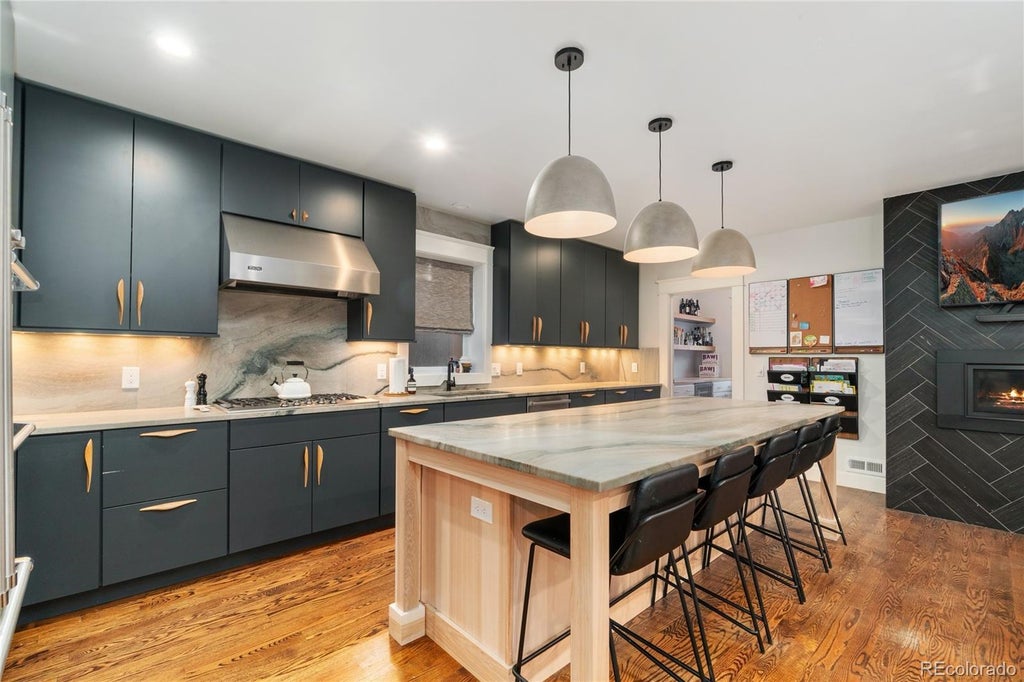 Welcome to this stunning East Wash Park home, located just a few blocks from the iconic park itself. This 5-bedroom, 4-bath residence blends timeless charm with modern design and sits in one of Denver’s most coveted neighborhoods. With an open floor plan, gourmet kitchen, and seamless indoor-outdoor flow, the home is perfectly suited for both everyday living and entertaining. The heart of the home is a striking chef’s kitchen featuring dark custom cabinetry, dramatic stone countertops, and a spacious island with bar seating, opening to a warm and inviting living area with a sleek fireplace. From the dining space, step outside to a beautifully designed backyard patio—perfect for al fresco dining and relaxed evenings under the string lights. Upstairs, the home offers three generously sized bedrooms, including a vaulted-ceiling primary suite with exposed beams, abundant natural light, and a serene en suite bath. On the main level, a private office provides the perfect work-from-home setup. The finished basement includes two full conforming bedrooms and a large flex space, ideal for a media room, playroom, or guest retreat. With a classic brick exterior, covered front porch, and private fenced backyard, this East Wash Park gem offers style, function, and an unbeatable location.
