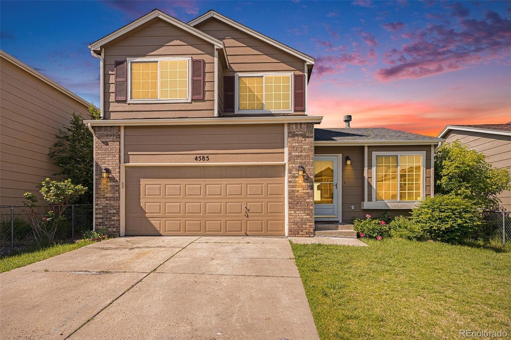 BRAND NEW CARPET! Well-maintained, move-in ready home with magnificent mountain views! Great location near Fort Carson, Peterson Space Force Base, and Schriever Air Force Base! The main level features a functional layout with a two-sided fireplace separating the family and living rooms, and vaulted ceilings in the great room that add a sense of openness. The kitchen includes stainless steel appliances, ceramic tile flooring, and a pantry for added storage. A convenient half bath is also located on the main level. The upper level, includes a spacious master suite with stunning mountain views, a walk-in closet, and an adjoining bath featuring a double vanity. 2 additional bedrooms and full bathroom round out the upper level. The fully finished garage has painted floors, offering a clean and versatile space. The home also includes an unfinished basement with rough-ins, providing plenty of potential for future customization. A radon mitigation system is already in place. Enjoy outdoor living with a shed in the backyard and no rear neighbors—offering beautiful Front Range views. Minutes from shopping, schools, parks, restaurants, and major thoroughfares! This beautiful home is move-in ready for an easy transition for you!