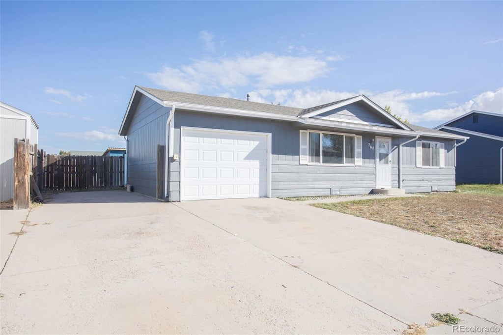 The welcoming façade presents classic curb appeal and features an integrated one-car garage, complemented by an oversized concrete drive ensuring ample off-street parking.