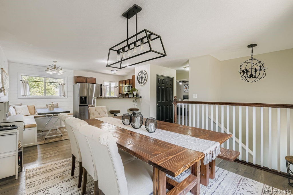 Welcome to this charming remodeled farmhouse that perfectly blends rustic charm with modern comforts. As you step inside, you'll be greeted by a warm and inviting atmosphere, accentuated by fresh paint and new flooring that flows seamlessly throughout the home. The heart of this residence is the custom breakfast nook, an ideal spot for morning coffee or family gatherings, featuring cozy seating and lovely views of Pikes Peak through every front window. Retreat to the primary bedroom, where stunning custom barn doors add a touch of character and elegance. The fully fenced backyard offers privacy and a safe space for pets to play, surrounded by mature landscaping that enhances the home's quaint appeal. With a new hot water heater ensuring efficiency and peace of mind, this farmhouse is ready for you to make it your own. Experience the perfect blend of vintage charm and modern convenience in this delightful property!