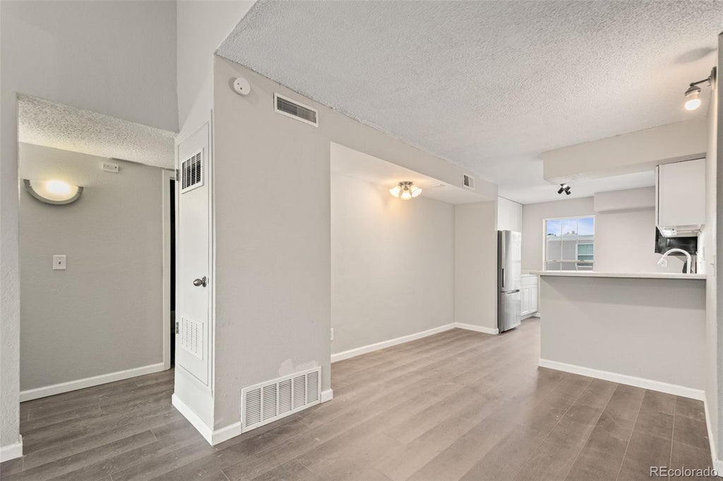 The kitchen is a chef’s dream, featuring gleaming stainless steel appliances, a sleek gas range, and refreshed cabinetry — all complimented by modern finishes and a refined aesthetic. Entertain or unwind in the open-concept living area adorned with luxury vinyl plank flooring, offering durability and easy maintenance without sacrificing elegance.