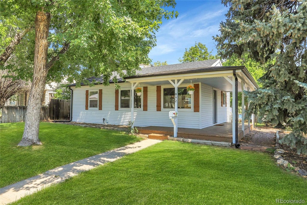 Brilliantly Designed Athmar Park Charmer with High-End Renovation & Private Outdoor Space This fully renovated 2022 Athmar Park gem showcases designer finishes and a brilliant use of space, creating a home that feels open, airy, and larger than expected. Sunlight streams through expansive windows and a kitchen skylight, illuminating the beautiful laminate floors and thoughtful layout that seamlessly connects the living, dining, and kitchen areas. The chef-inspired kitchen is as functional as it is stylish, featuring white granite countertops, custom white cabinetry with brushed copper hardware, a gas stove, stainless steel appliances, and a dine-in island perfect for casual meals or entertaining. Outside, the private and charming backyard offers a wooden deck for grilling, string café lights, and space to add a firepit or garden beds. A barn-style storage shed and an oversized finished garage with insulation and drywall provide excellent storage and flexible hobby space. Curb appeal shines with an adorable wraparound front porch and warm brown shutters. Located just two blocks from Huston Lake Park—perfect for lakeside walks, pickleball, and enjoying the outdoors—and with easy access to South Broadway, Cherry Creek, downtown Denver, and I-25, this home perfectly blends charm, function, and city convenience. This is truly truly a gem!!