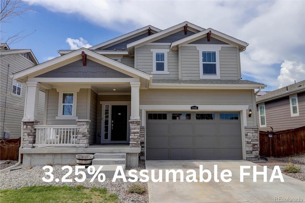 ASSUMABLE LOAN AT 3.25%! LOAN AMOUNT APPROXIMATELY $470,000! Why buy new when you can own this beautiful gem at such a LOW INTEREST RATE! Even new builds can't compete and this has a fabulously landscaped backyard! Welcome home to this charming 3-bedroom, 3-bathroom residence in the highly desirable Gold Creek neighborhood. Thoughtfully maintained and move-in ready, this home offers the perfect blend of comfort, style, and functionality. Step onto the inviting front porch, perfect for enjoying your morning coffee, or head to the fully fenced backyard, complete with a sprinkler system, spacious patio, fire pit, and three raised garden beds—ideal for outdoor entertaining or a summer garden. Inside, you're greeted by a warm and welcoming entryway featuring luxury vinyl plank flooring that flows seamlessly through the main level. The open-concept layout includes a generous living room, dining area, and a large kitchen outfitted with granite countertops, stainless steel appliances, walk-in pantry, and a center island with bar seating. Upstairs, retreat to the primary suite with its private 3/4 bathroom, complete with dual vanities, granite countertops, a spacious walk-in shower, and a large walk-in closet. Two additional bedrooms and a convenient upstairs laundry room complete the upper level. Practical touches throughout include a finished crawl space offering ample storage, a Ruckus Wifi Extender, smart garage door, and a cozy mudroom off the attached two-car garage. Hurry before someone else snaps up this amazing rate!