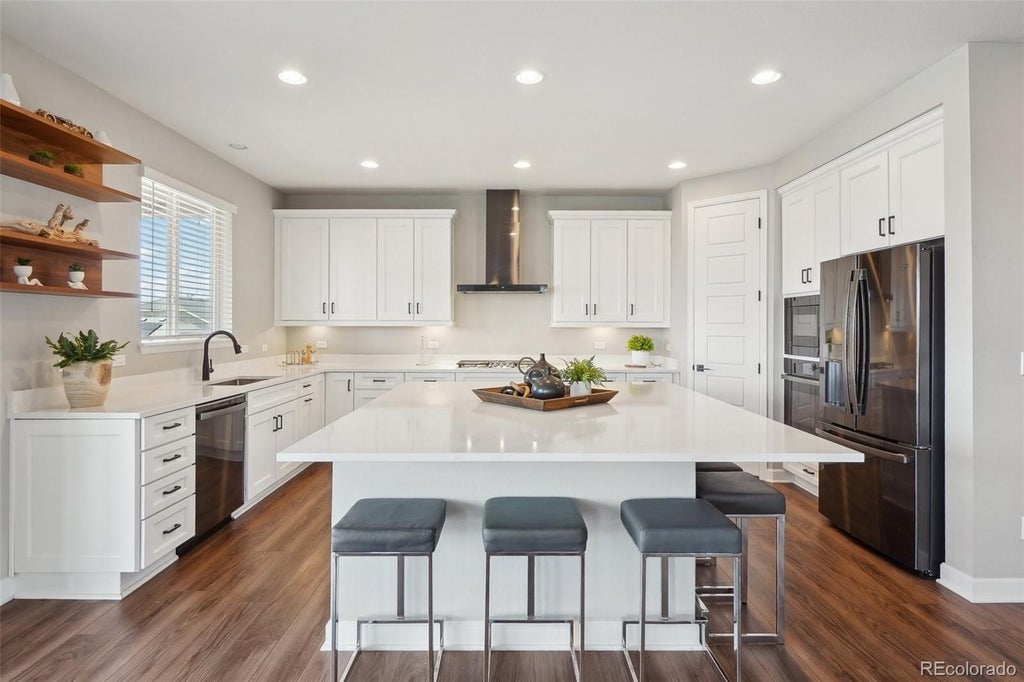 Just reduced to $839,999! Better than a model, this 6-bedroom, 5-bath stunner offers nearly 4,600 sq. ft. of luxury living. The chef’s kitchen features a massive island and built-in wine fridge, opening to a sun-filled family room with dual sliders to a 38-foot covered deck and mountain views. Main level bedroom with full bath is ideal for guests or an office. Upstairs boasts a spa-like primary suite, a loft, and three more bedrooms. The finished walk-out basement includes a private bedroom, fitness space, and patio access. Convenient to DIA, shopping, and dining — this home blends elegance, space, and comfort with designer finishes throughout.