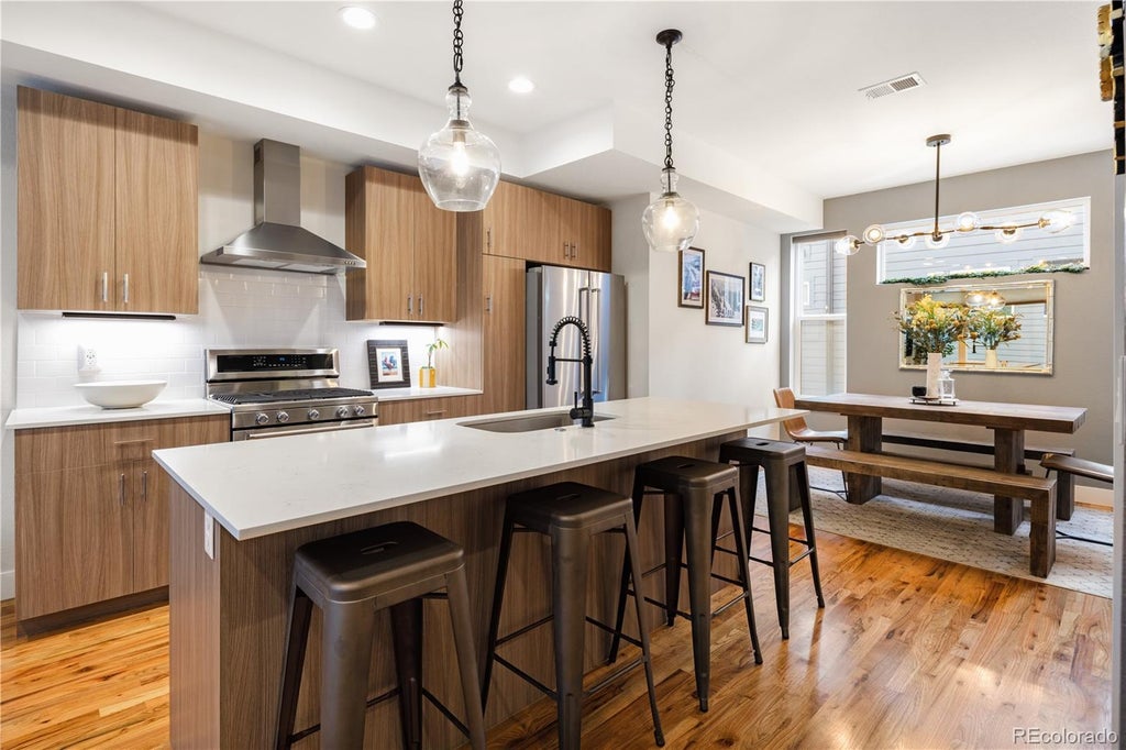 Centrally located near Sloan's Lake & restaurants. Rare 2-car heated garage. Open floor plan. 2 bedrooms with private en-suite bathrooms. Private expansive rooftop deck. Wired for fiber internet. This meticulously maintained townhome is move-in ready, combining modern design with a prime Denver location. Just blocks from Sloan’s Lake, you’ll enjoy one of the city’s most desirable neighborhoods with access to running, biking, and paddle boarding, plus excellent walkability to coffee shops, gyms, breweries, and restaurants. The home includes 2 spacious bedrooms, each with a private en-suite bathroom, along with a guest half bath. The open-concept main level features oak hardwood floors, quartz countertops, and oversized windows that fill the space with natural light. Every detail has been cared for, with fresh finishes and an immaculate interior that make this home truly turnkey. A private rooftop patio expands your living space outdoors, ideal for relaxing, entertaining, or grilling, while the rare 2-car garage adds both convenience and storage in this walkable neighborhood. The location offers the best of both worlds—vibrant city living just minutes to downtown and Edgewater Marketplace, with quick connections to Hwy 6, I-70, and major routes that take you straight to the mountains for weekend getaways. Click here for a virtual tour: https://my.matterport.com/show/?m=4L9CbAybWSf