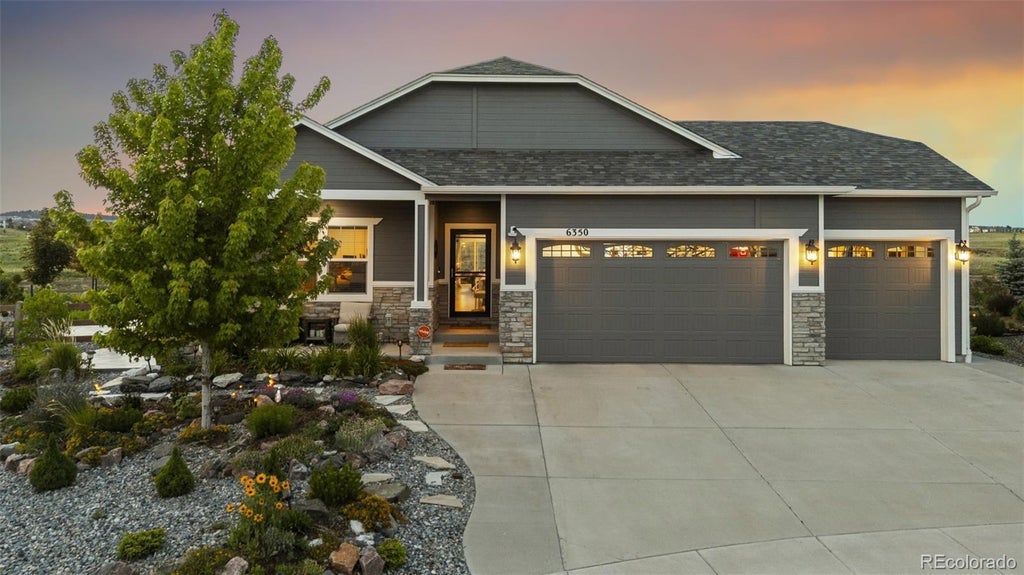 Welcome to this stunning 4-bed 3-bath home in sought-after Wolf Ranch! Breath-taking landscaping makes this home the envy of the neighborhood. Step in from the cozy covered front porch to see this beautiful ranch-style property with luxury vinyl plank flooring and an inviting open floorplan. The gourmet kitchen is a chef’s dream, featuring lots of upgrades: double oven, inset gas range cooktop, oversized island, stone countertops, pantry, crown moulding on the upper cabinets, and soft-close cabinet doors. The living room is perfect for entertaining, and the space is pre-wired for surround sound. Enjoy your meals al fresco on the gorgeous patio or by the built-in firepit while taking in spectacular views of the mountains or the open space the property backs to. Retreat to the primary suite featuring an ensuite 5-piece bath with walk-in closet and access to the laundry room, providing true main-level living. The mudroom features convenient built-ins, and access to the oversized 3-car garage. An additional bedroom and full bath round out the main level. Head downstairs to the massive basement, featuring 9ft ceilings and roughed-in for a wet bar. Two additional bedrooms featuring spacious closets, another full bath, and additional storage space provide endless options for guests, an office, home gym, craft space, and more. All basement windows feature upgraded window well coverings. The enviable backyard also features a stamped concrete patio that wraps around the house, gas hook-up for all of your grilling needs, zero-scaping, solar lights on rear fence, and views of the mountains and open space. Enjoy an abundant harvest from three fruit trees bearing peaches, plums, and pears, as well as plants yielding raspberries, blueberries, and strawberries. Enjoy life in Wolf Ranch, where residents enjoy access to state-of-the art amenities, including trails, parks, a clubhouse, and pool. Don’t miss your chance to make this beautiful home yours. Schedule a showing today!