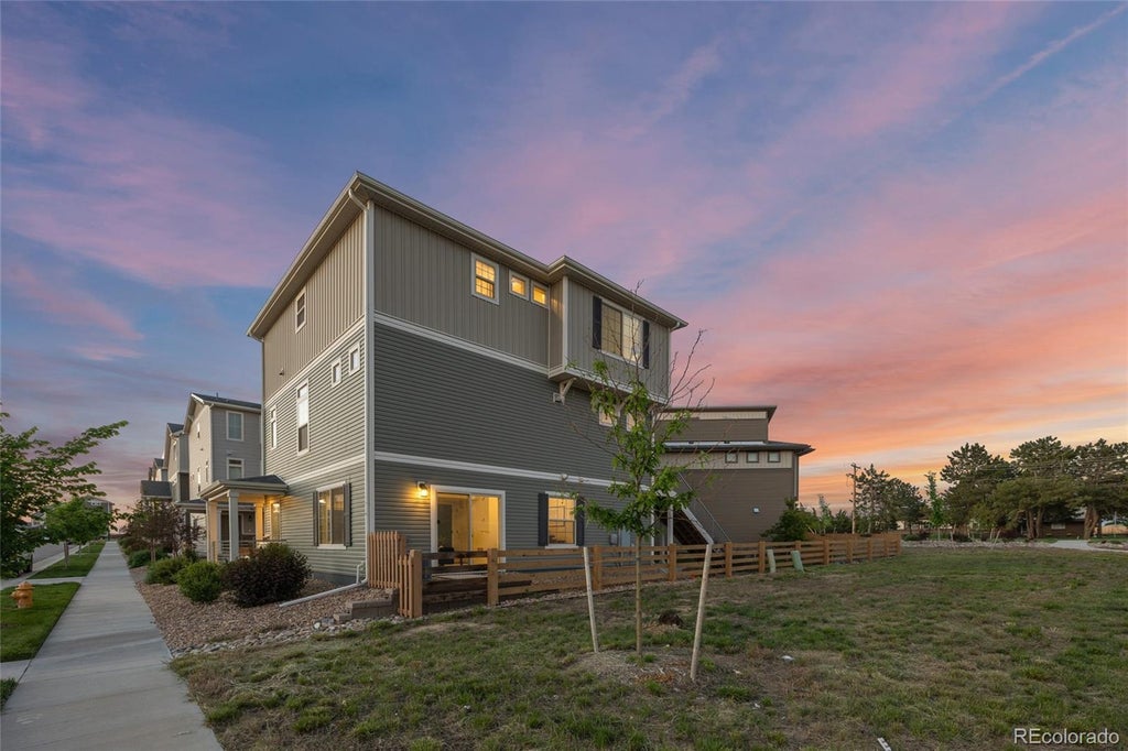 Backing to trails, this beautifully upgraded single family home in Reunion Ridge is just three years old and boasts with multiple living spaces, plenty of natural light and offers plenty of privacy. Thoughtfully enhanced throughout, this energy-efficient home offers comfort, functionality, and style in a vibrant and connected community. Step inside to find an open and inviting layout. The main floor features a foyer entrance and generously sized living space. The room offers access to the backyard on a private patio. It is the perfect space to welcome your guests or set up a home office. Upstairs, you’ll find the kitchen, dining and family room areas. You’ll enjoy upgraded appliances, custom cellular shades, upgraded knobs on doors and cabinets, dimmer light switches, and a sleek kitchen faucet. The main floor is complete with a bonus room - perfect for a Zoom Room or workout space - and a gorgeous deck. The primary suite features an upgraded showerhead for a spa-like feel, while the additional bedrooms and bathroom are tastefully designed to make you feel at home. The outdoor space has been transformed with professional landscaping, a spacious concrete patio, and convenient stairs leading from the kitchen to the backyard—perfect for indoor-outdoor entertaining. The backyard is perfectly positioned to open space for optimal space and easy access to trails. The garage provides ample parking and storage, and the home also includes modern touches like a tankless water heater offer efficiency and convenience. Unique features such as the in-home climbing wall add a fun and creative element to the space! Enjoy the nearby community park and playground, as well as close proximity to nearby favorites like: Fronterra Park, Second Street Open Space and more. Great dining options are just minutes away, including: State House, Dion’s Pizza and Reunion Coffee House. With easy access to 76 and 104th, your next home awaits on Xanadu Street!
