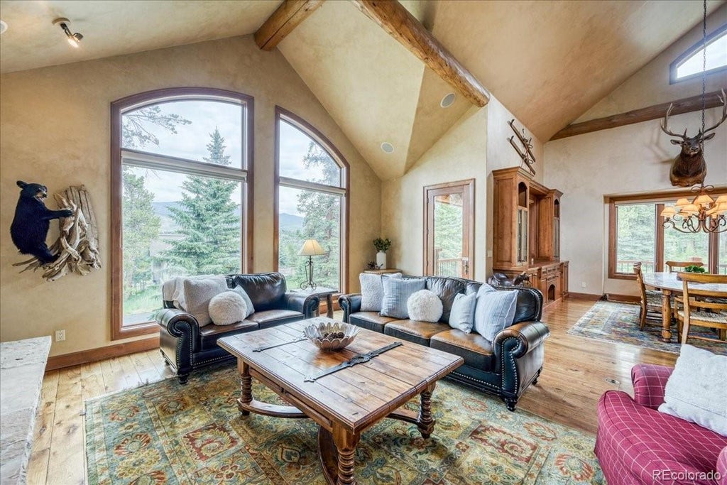 Welcome to your mountain retreat in the heart of Keystone West Ranch! This stunning 5-bedroom, 4 full and 2 half-bathroom home is perfectly situated near the acclaimed Keystone Ranch Golf Course and offers the ideal blend of rustic charm and modern comfort. Thoughtfully designed for entertaining and relaxation, the home boasts two ensuite primary bedrooms, a second family room, and a well-laid-out floor plan that allows everyone to spread out—yet still come together. Step into the vaulted-ceiling living room adorned with log accents and drenched in natural light from huge windows that frame stunning mountain and forest views. The gourmet kitchen is a chef’s dream, featuring carefully curated details and an effortless flow into the main living space—perfect for hosting. Enjoy summer afternoons on the south-facing deck, ideal for grilling and soaking up the sun. An elevator provides easy access to all three levels of the home, offering both convenience and luxury. Expansive wraparound decks surround the home, offering multiple spaces to take in the serene surroundings and mature trees. The oversized garage adds to the home's functionality and convenience. Located just 3 minutes from the Keystone Ranch Golf Club and 15 minutes from Keystone Ski Resort, this home is a year-round haven for outdoor lovers. Owners enjoy access to the Keystone Ranch pool house and clubhouse, tennis courts, and the coveted Keystone Ranch fine dining restaurant, plus all the beauty and challenge of the Robert Trent Jones Jr.-designed golf course. With its grand entrance, tall ceilings throughout, and an inviting, rustic mountain aesthetic, this is the perfect legacy home for creating lifelong memories.