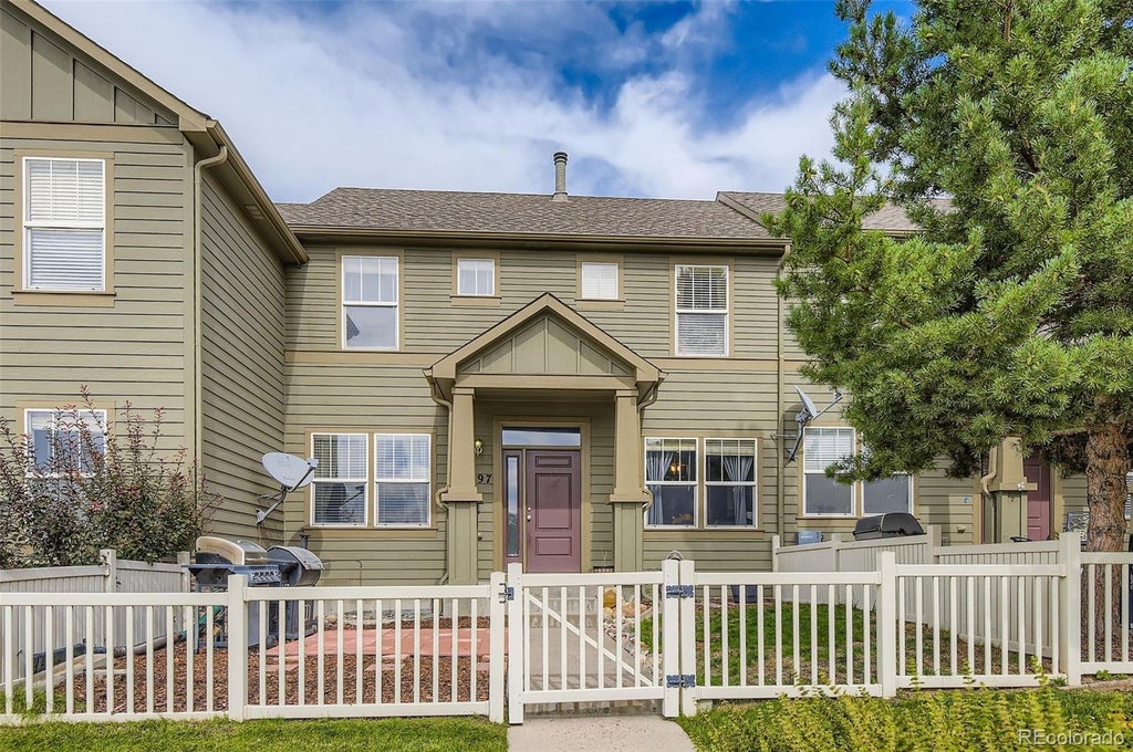 WELCOME HOME! This 3/3/2 townhome is perfect for you. This home has the best combination of single-family living with low-maintenance. Enjoy your fenced front yard with brick patio, perfect for that outdoor barbecue while enjoying the views of our Colorado mountains. Inside you'll be welcomed into a lovely living room, with gas fireplace and unique ceiling fan. The kitchen and dining area boast generous countertops and cabinetry along with wonderful stainless steel appliances. Laundry and 1/2 bath round out the main level living space. Upstairs you will find the primary bedroom/bathroom suite along with another bedroom and a large room that could be another bedroom, office or flex room. Don't forget the benefit of the attached 2-car garage, giving both storage and protection from the wintertime snow. The community itself is to be appreciated as well, boasting parks, walking trails, pool, playground, all the amenities just outside your door, but without the hassle of homeowner maintenance. You'll enjoy the location, on the coveted west-side with easy access to the I-25 corridor whether traveling to Denver or to Colorado Springs. Enjoy easy, modern single-family, low-maintenance living. Call today, and let us say WELCOME HOME!