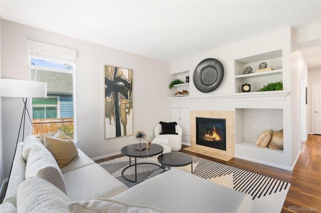Step inside to soaring ceilings, abundant natural light, and an open staircase leading upstairs. The formal living and dining rooms connect seamlessly to a spacious kitchen with ample cabinetry, granite countertops, a large island, and sunny windows. Just off the kitchen, the family room invites you to relax by the cozy gas fireplace. A private study with French doors, a ¾ bath, and a laundry room with storage sit near the 3-car garage—deep enough to fit an extended truck. Upstairs, the primary suite offers a five-piece bath with dual vanities, soaking tub, walk-in shower, and expansive walk-in closet. Two additional bedrooms and a full bath complete the level. Updates include luxury wood plank flooring, fresh interior paint, and modern finishes throughout. The finished basement provides a versatile flex space, ideal for a media room, fitness area, or optional 4th bedroom. Outdoors, enjoy a manicured yard with mature trees, flower beds, and a covered patio perfect for entertaining. A leased solar system adds energy efficiency and cost savings. Home Farm residents enjoy parks, trails, a pool, and tennis courts, all with convenient access to shopping, dining, and top-rated schools. This home blends comfort, elegance, and community living in one exceptional package.
