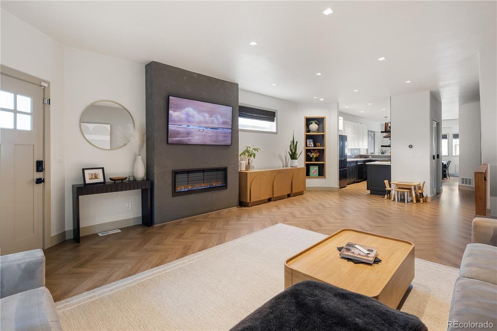 Bold, Modern, and Just One Block from Sloan’s Lake! If bold and modern is your style, you’ll fall in love with this beautifully renovated duplex offering 4 bedrooms, 3.5 bathrooms, a two-car garage, and over 2,800 square feet of stylish living space. The curb appeal stuns with mature trees, fresh exterior paint, and brand-new sod. Step inside to soaring ceilings, herringbone flooring, modern light fixtures, and large windows that flood the home with natural light. The main floor boasts a spacious living area with a cozy fireplace, a separate sitting nook, and a designer kitchen you’ll swoon over—featuring smart appliances, quartz countertops, a moody backsplash, and custom cabinetry with accent lighting for that extra wow factor. Upstairs, the vaulted primary suite offers a spa-like bath with a soaking tub and walk-in shower. Two additional bedrooms, a full bathroom, and a laundry closet with washer and dryer complete the upper level for convenience and comfort. The finished basement adds incredible versatility with a fourth bedroom, a beautifully appointed bathroom, and a state-of-the-art home gym (easily convertible back to a media room with carpet already in place underneath the rubber flooring). Located just one block from Sloan’s Lake and walking distance to top-tier restaurants, breweries, coffee shops, and boutiques, this home is truly one of a kind. Don’t miss your chance to live in one of Denver’s most desirable neighborhoods!