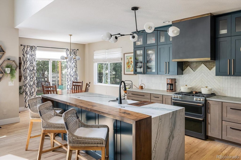 Welcome to Erie, known for its small town feel, strong community vibe, almost daily hot air balloons & its majestic mountain views. Coveted Erie Commons is front and center to all the action with its close proximity to Erie Community Park, Rec Center & Library, Aspen Ridge, Erie single-track, summer concerts, Farmer's Market, Community Pool & more. You will fall in love with this home with its inviting front porch & open entertaining spaces. The newly remodeled kitchen is the heart of the home as it opens up to the living room, vaulted ceilings, cozy fireplace & relaxing back patio. This is the kitchen you have always dreamed of with its waterfall island, honed quartzite counters, walnut floating shelves, beverage/wine fridge, GE Cafe matte black appliances, dual fuel range with gas stove & electric oven, striking vent hood & custom marble backsplash featuring our very own Colorado mountains! The main floor also features a bright & beautiful office, newly remodeled laundry room, stylish powder bath, new light fixtures, refinished oak hardwood flooring & stairs, new baseboards/windows (2024). You will love starting and ending each day in your own primary retreat conveniently situated on the main floor with soaking tub, separate shower, large walk in closet, dual sinks, soothing color palette & custom window coverings. The upper level has 4 additional bedrooms, large hallway bath with dual sinks, ample storage, bright & sunny loft space to make your own, new hard surface flooring eliminating all carpet from this home. The basement is open to the imagination, providing additional storage, new furnace in 2025, A/C (2021), whole house attic fan (2023), water heater (2017) & new roof (2024) as well. The backyard is an oasis with its mature trees, plenty of shade, in ground trampoline, new patio & walkway, convenient garden beds complete with a pumpkin patch just in time for a cozy fall! Experience the best of Erie before it's too late!