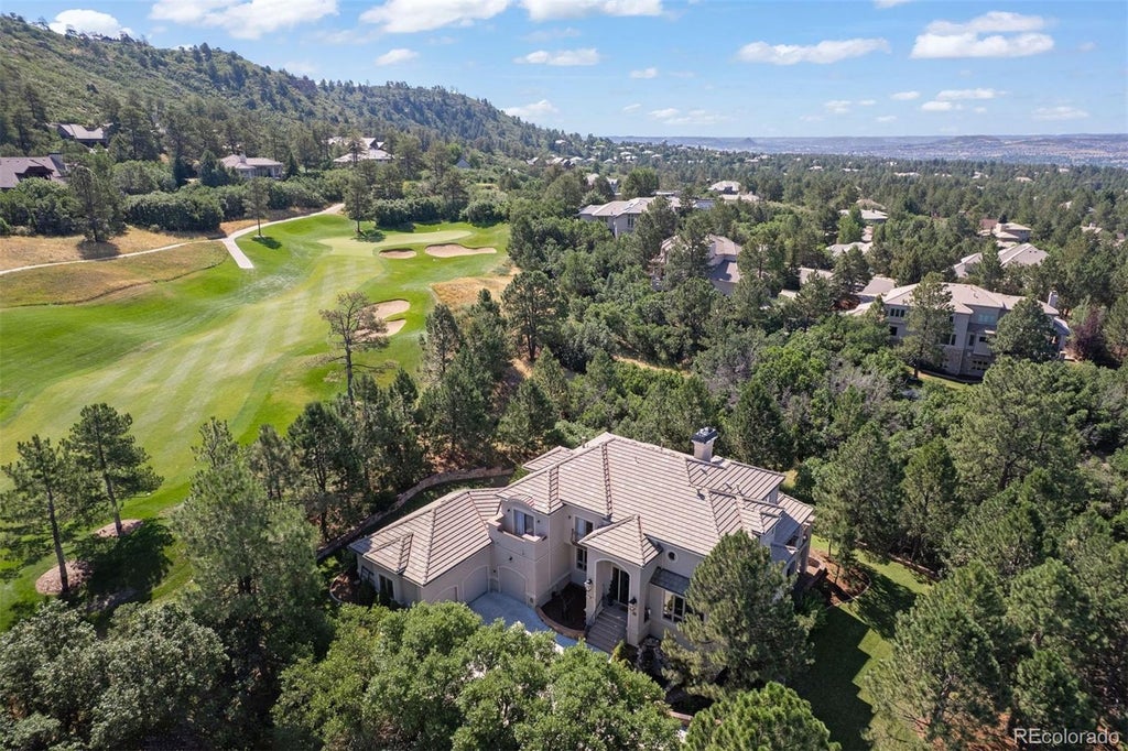 Dramatic Price Reduction! This home comes with the opportunity for the buyer to apply for and purchase a regular golf membership at The Country Club of Castle Pines! Call Listing Agent for more details. Perched on a serene hillside in prestigious Castle Pines Village, this stunning home facing the fabulous Rocky Mountains delivers five bedrooms, five baths, and an unbeatable blend of luxury, comfort, and style! From the moment its beautiful, neoclassical-inspired design and light-filled windows are visible, you’re embraced by its welcoming warmth—and the experience only gets better! Inside, soaring ceilings and wood floors stretch across bright, open living areas. Stunning finishes and details like recessed lighting and elegant millwork elevate every corner. The great room stuns with two-story ceilings and a sleek fireplace, while the dining alcove sets the scene for memorable meals under a contemporary chandelier and inspiring streaming sunlight. The large-scale kitchen impresses with handsome cabinetry, a central island cooktop, pantry, breakfast nook, and a multi-seat bar. Your carpeted primary suite is a secluded sanctuary, with a fireplace, an exclusive balcony, and a spa-like ensuite that provides a separate soaking tub. Even the generous office imparts tranquility with access to the expansive deck, easy access for a quick relaxing break from work. Downstairs, the ideal recreational hub stands ready for entertaining—complete with a 500-bottle wine cellar, wet bar, yoga studio, gym, billiards or ping pong area and a stacked stone hearth adjacent to a flagstone patio with a built-in grill and pizza oven. Rooms and areas for all your recreation desires. Backing to the 7th fairway of The Country Club at Castle Pines, this .80-acre flat lot cannot be duplicated with it's privacy and sanctuary feel. Close to I-25, The Shoppes at Castle Pines, and only a short drive to Denver—this is where your next chapter will begin!