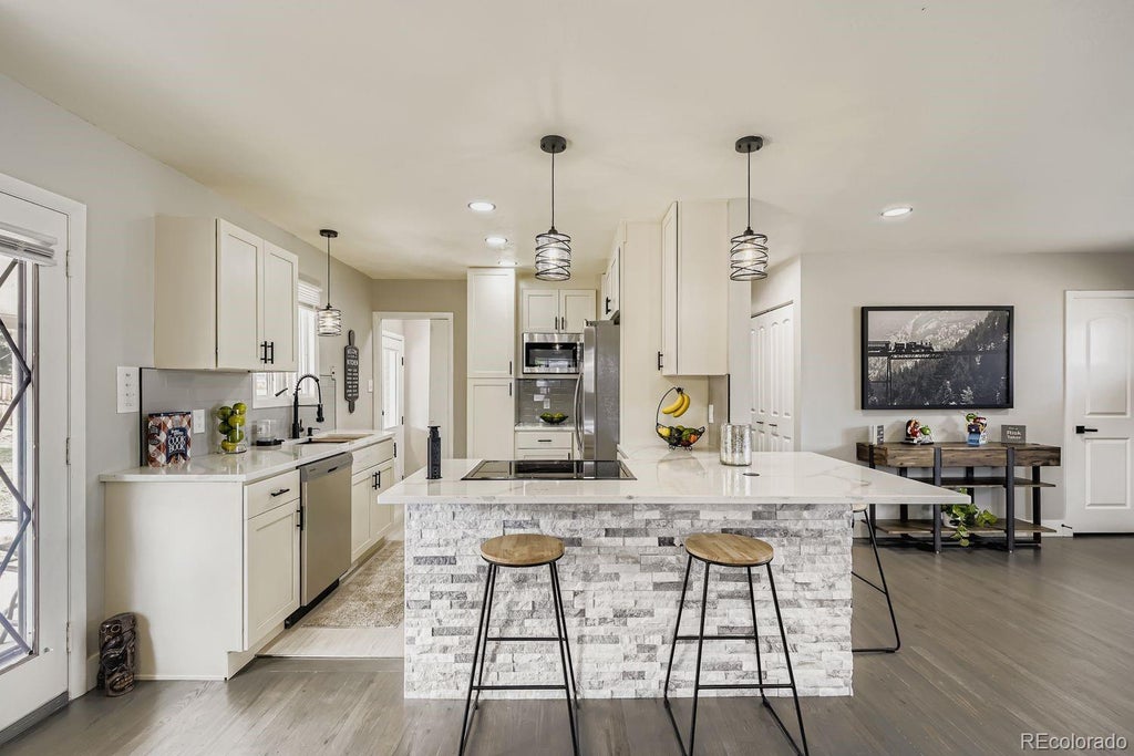 Complete designer kitchen with new cabinetry, appliances, and durable quartz countertops that combine beauty with everyday practicality