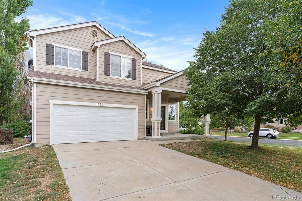 Welcome home to contemporary living in this 2-story residence nestled on a spacious corner lot with mature trees and over 2,700+ sqft of living space, this is 1201 102nd Ave. Grand two-story ceilings, beautiful hardwood floors, tons of natural light, and a neutral palette greet you upon entry. The formal living room includes a dual-sided gas fireplace to be enjoyed by the inviting family room on the other side, bringing warmth and texture to the space. Enjoy hosting guests or intimate family meals in the dining room, just steps from the upgraded kitchen featuring white cabinetry, quartz counters, a stainless steel appliance package, and a walk-in pantry. The slider in the dining space leads out to a sizeable deck with a custom pergola, the perfect spot for summer BBQs or enjoying your morning cup of coffee while overlooking a professionally landscaped backyard with mature trees and a lush lawn. Upstairs, two generously sized secondary bedrooms, a full bath, a bonus loft space, and the primary suite are located. The primary is a true sanctuary, complete with a large walk-in closet and an ensuite bathroom. Additional features of this turn-key residence include a laundry/mud room with built-in storage leading to the attached 2-car garage, newer interior and exterior paint, and an unfinished basement for future expansion or ample storage. The Promontory community is ideally situated within minutes of Windsor schools, multiple community parks, shopping, outdoor activities, and easy access to Hwy 34 and I-25. Do not hesitate to experience this stunning property; book your showing today!