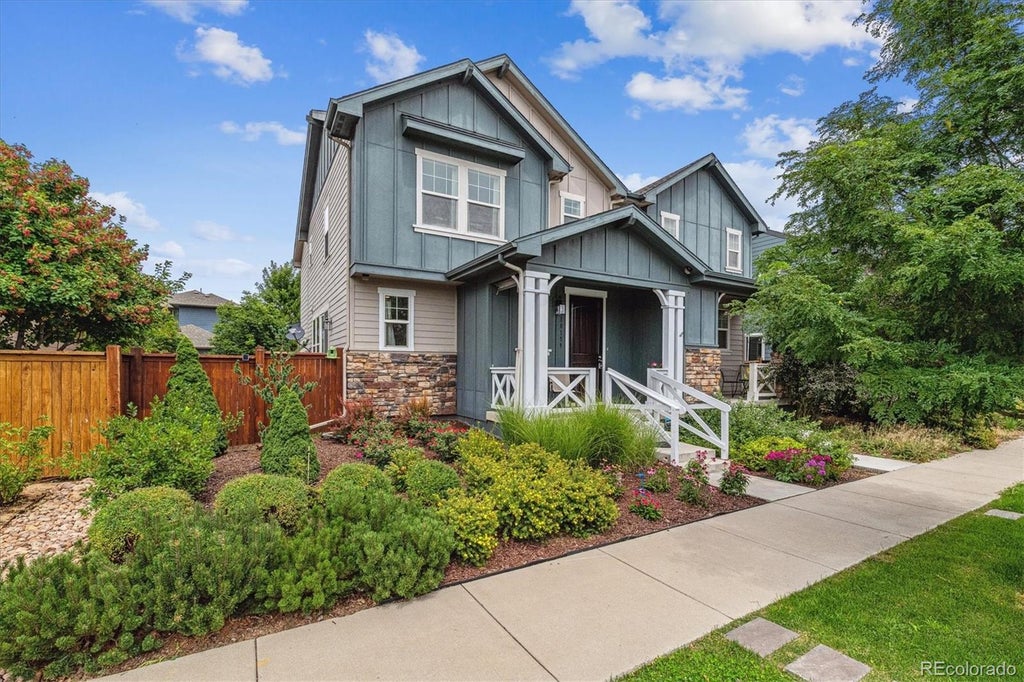 Welcome to 10159 E 25th Drive, a beautifully maintained Craftsman-style home that radiates warmth and sophistication with rich exterior finishes, a classic covered front porch overlooking expansive trails, and a professionally landscaped front yard.