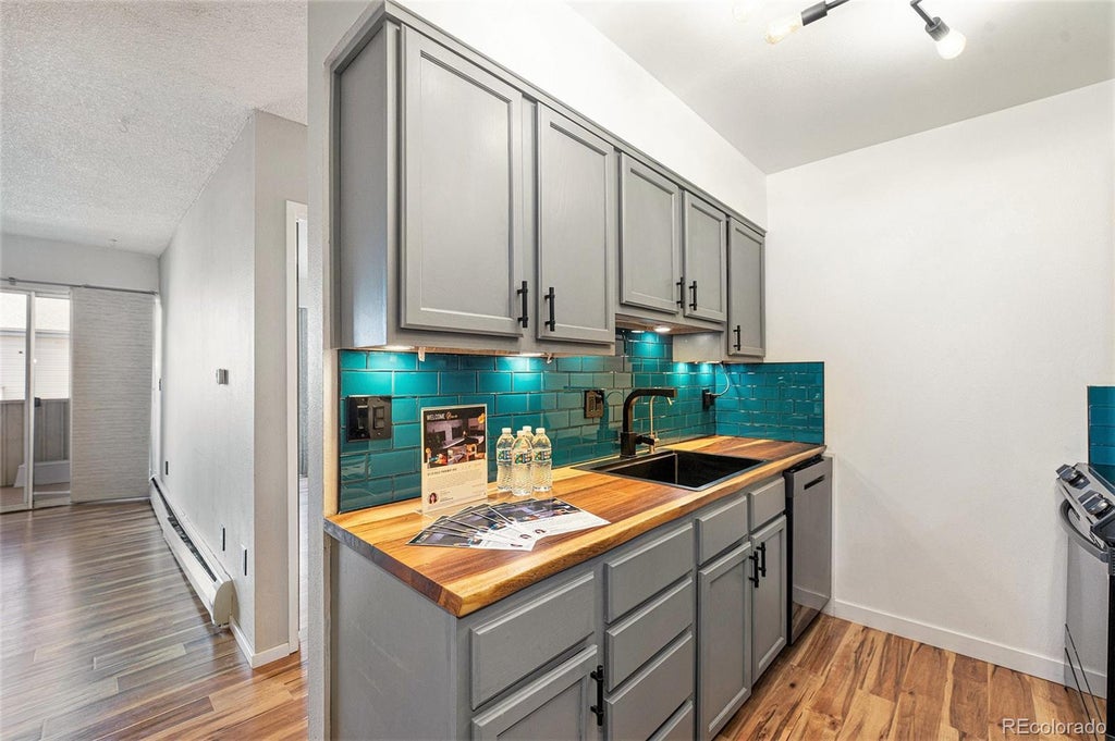 This beautifully updated 1 bed, 1 bath condo combines style, comfort, and convenience in one sleek package. Featuring recently redone laminate flooring throughout and an updated kitchen with newer black stainless appliances, reverse osmosis water purification system, butcher block countertops and under-cabinet lighting; the space feels both warm and contemporary. On-trend tile finishes in both the bathroom and kitchen backsplash elevate the look with clean, designer-inspired style. The open living area includes a wood-burning fireplace and flows onto a large private balcony—with plenty of room for seating, plants, or your own creative touch to make it cute and cozy. You'll love the abundance of storage, including a dedicated storage unit and plenty of in-unit space, plus one reserved parking spot. Ideally located near 9+CO dining and entertainment, City Park, and Cherry Creek, this condo offers easy access to some of Denver’s most vibrant neighborhoods. Move-in ready and full of thoughtful updates, this is one you won’t want to miss!