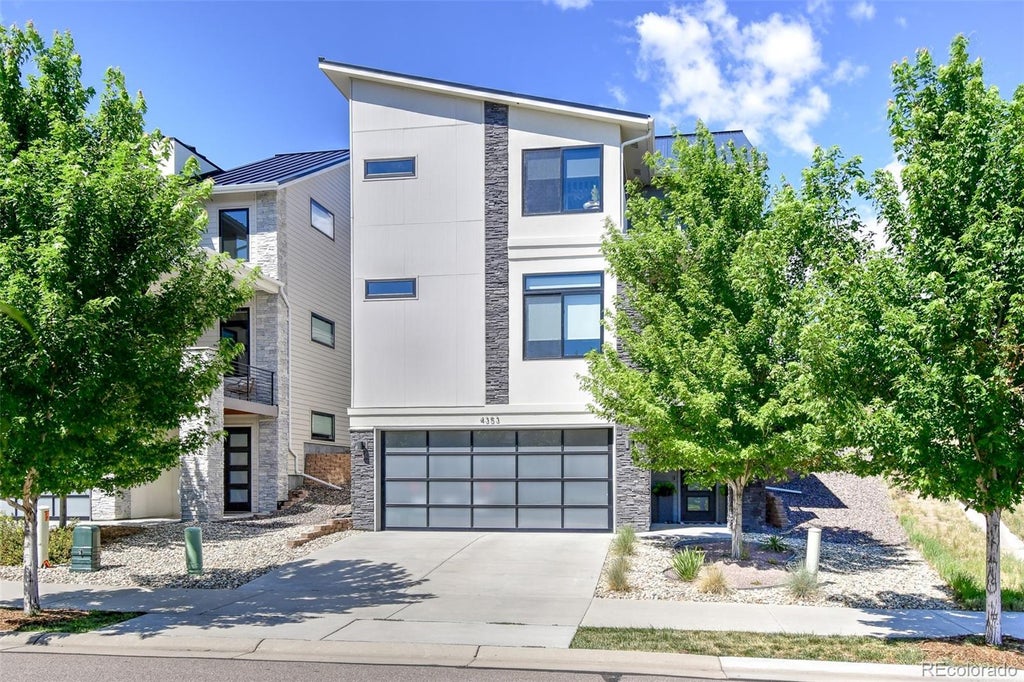 The dream home you have been waiting for is here! Designer luxury touches & adjacent to open space with breathtaking views. Enjoy your own oasis on the roof top deck with hot tub & fire pit. Look to the West for views of the front range Rocky Mountains or to the East for sweeping views of the Castle Rock valley. Surround yourself with high-end modern design. The open concept main level delights with floor-to-ceiling stacked stone linear fireplace. The chef's dream kitchen includes elegant waterfall countertops on the large island. You’ll love cooking in this kitchen with Bosch gas cooktop & double built-in ovens, stainless-steel hood, coffee bar & a huge walk-in pantry. Kitchen opens to dining area with access to the fantastic covered back patio. The main floor includes a bedroom or office with its own covered balcony & huge walk-in closet. Upscale bathroom with shower will impress your guests. Continue upstairs past the large windows with beautiful views to a fantastic loft with central access to the bedrooms. The primary bedroom boasts a vaulted ceiling, stunning views, ensuite bathroom & a large walk in closet. The bathroom feels like a spa with free standing deep soaking tub, a shower with dual entrances & dual shower heads. Two additional bedrooms are located past the loft area that share an upscale full bathroom. Conveniently located laundry on this level with easy access from all bedrooms. Continue upstairs to the large & awe-inspiring rooftop deck with hot tub & gas fire pit. Additional guest suite bedroom with large walk in closet with private bathroom & multiple storage areas on the lower level. So many upscale features like custom motorized blinds, dual zone HVAC System, Anderson windows & private outdoor space on every level of the home. Great location in the Meadows near I-25 & Santa Fe, outlet mall, with plentiful dining options. Enjoy access to multiple trails off the serene hillside open space backing to the home.