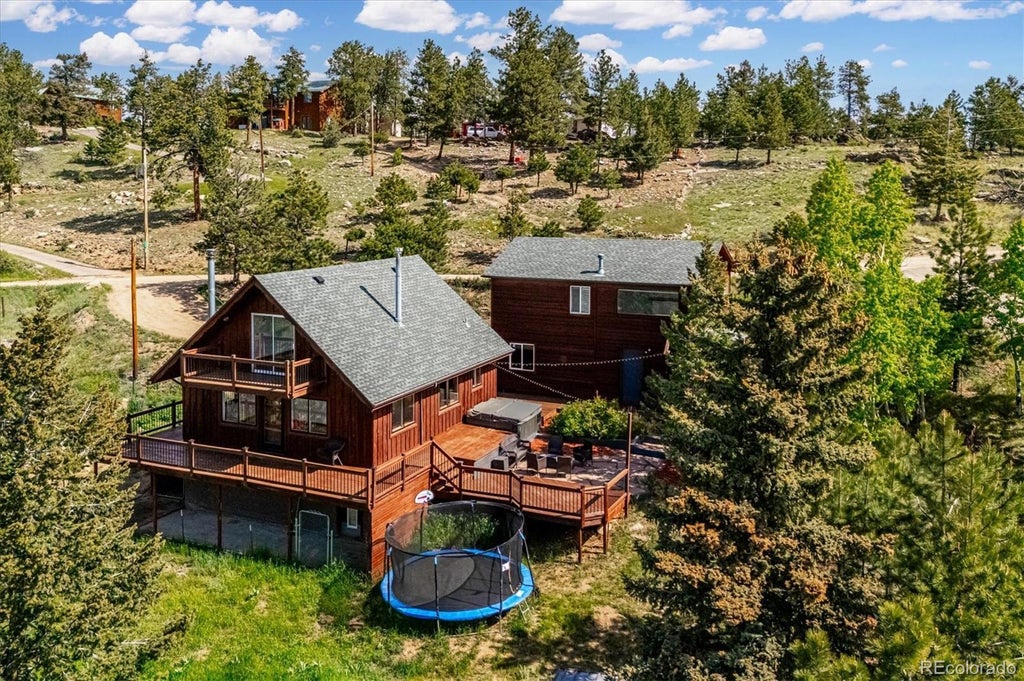Huge price reduction! Unique opportunity on a home with an finished living area above garage in Bailey! Welcome to quiet and peaceful living in Burland Ranchettes! Beautiful well maintained mountain home with awesome expansive mountain views and sun drenched southern exposure! Light and bright with nice views from every window! Updated fixtures, a new half bath on the main level and gleaming refinished wood floors. The living room features four large windows to bring in the outdoors and a cozy wood stove for warm winter nights. The primary bedroom has a balcony with more serene views! Enjoy quiet sunsets from the wrap around deck or while soaking in the hot tub! Extensive deck and patio areas great for entertaining and those outdoor get togethers! The walkout basement with rec room also connects to the fenced dog run. There are endless possibilities with the 30' x 22' detached garage that includes a work shop w/220V, half bath and gas furnace that has an additional 600+ SF of finished living area upstairs, possible ADU! This home is conveniently located within 5 minutes to Hwy 285, 20 minutes to Conifer shopping and restaurants and an hour to Breckenridge!