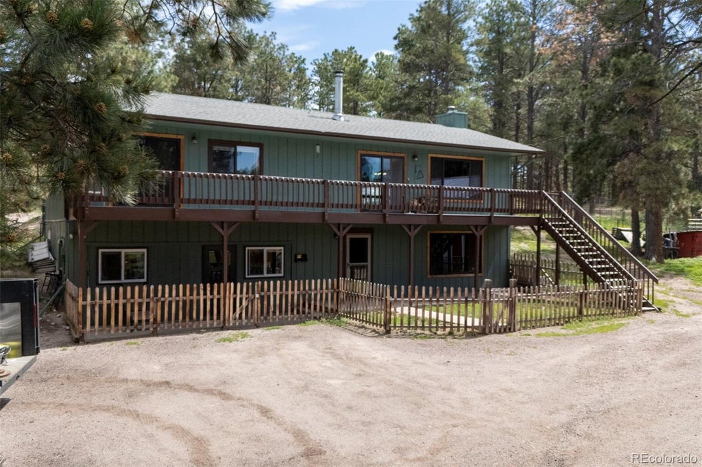 One-of-a-Kind 5+ Acre Farmhouse – No HOA, Guest Suite, Barns, Greenhouse, & SHOOTING RANGE! This rare, custom farmhouse offers the ideal blend of rural freedom & functional upgrades—perfect for farm enthusiasts, horse lovers, or those seeking a self-sufficient lifestyle. Situated in the award-winning D38 school district, this property features over 5 acres of fully fenced, usable land & a wide range of amenities. The attached garage has been converted into a beautiful 600 sq ft apartment—ideal for guests, rental income, or multigenerational living. A large metal two-car garage with an oversized bay door accommodates farm equipment with ease. Two additional barns on the property each have their own water & electrical supply for convenient animal care. Grow a garden underground in the 3-season greenhouse, complete w/ its own water source & temp gauge. A nearby root cellar provides excellent food storage. The land is fully fenced w/ multiple pastures & a round pen—ideal for equestrian use—and the gated entrance adds privacy & security. Inside the home, the main level includes a bedroom, ¾ bath, laundry room,& a cozy family rm with it’s own pellet stove overlooking a park-like setting. This room can also function as a non-conforming 4th bedroom. Upstairs opens to a spacious family room with a wood-burning stove & seamless flow into the kitchen & dining area—perfect for entertaining. Enjoy indoor-outdoor living with direct access to both front & rear decks. The primary bedroom has private deck access, and the main bath includes an extra shower—perfect for dog washing. Many updated Renewal by Andersen windows and sliders ensure comfort & energy efficiency year-round. This property also features a private target shooting area, a manual well pump for water backup, & the freedom of no HOA. Enjoy country living with convenient access to the Air Force Academy, Colorado Springs, Monument, Castle Rock, and Denver areas! Set up your showing!