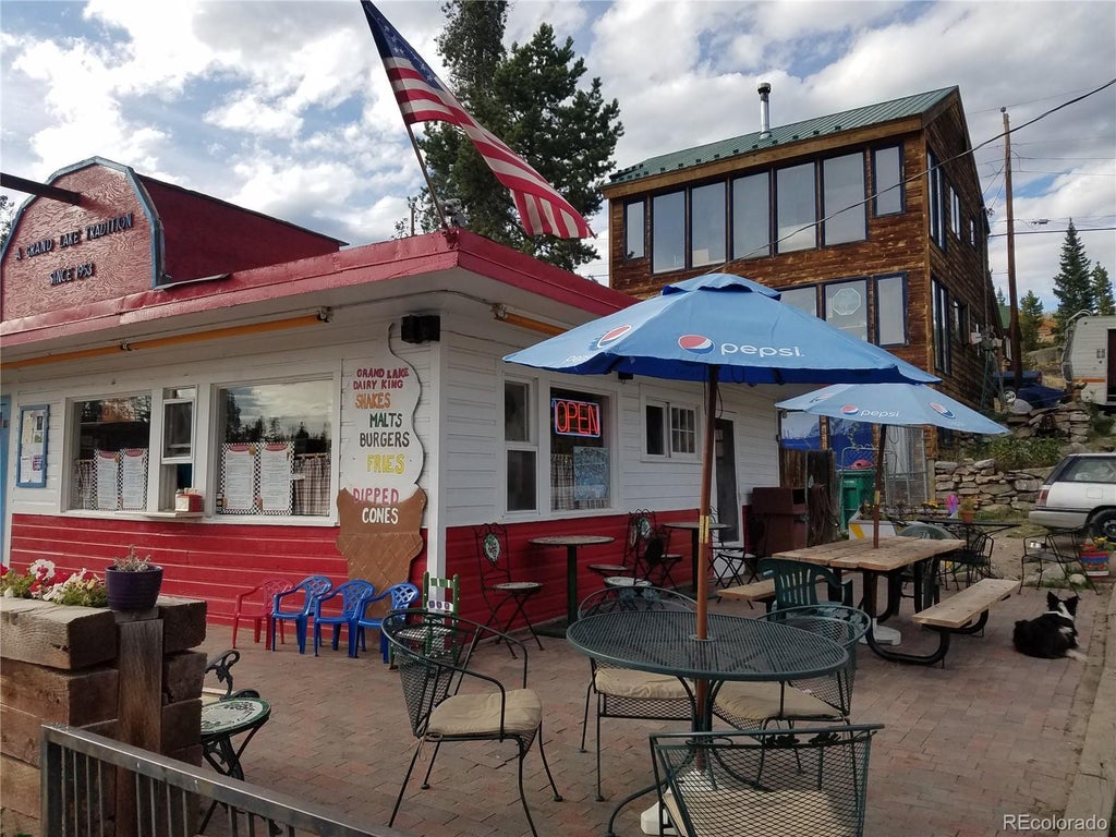 Good News from Health Dept. Visit! First fast food place as you leave the west entrance of Rocky Mountain National Park and first one as you enter the year round resort of Grand Lake, CO. Everyone drives past your location as they enter town and then again as they leave town! Plenty of parking. No franchise fees. This could be any kind of restaurant - or retail! Large Home could be for you, for employees or update it and let it be a place for you to rent out nightly or monthly for additional income. This property is a fixer-upper, ready for its new incarnation. Many more details and income figures are available from when the business was in full operation; just ask us for the email presentation.  R147260  Lot 16, Block 21  #629 Grand Avenue. Price reduced from 999,000 to $898,000 so that you can update the flooring.