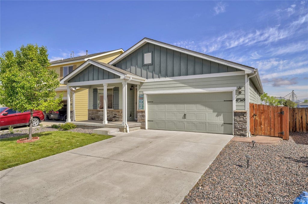 Opportunity to own at below market value! Welcome to the beautiful community of Bennett Crossing. Escape the busy hustle of Denver and relax in this small-town feeling community, just a short drive from the city. Step into this inviting 3-bedroom, 2-bath ranch-style home that seamlessly blends warmth, functionality, and contemporary living. The spacious open-concept kitchen flows effortlessly into the living and dining areas, creating a perfect space for entertaining and everyday comfort. Flooded with natural light, the dining area offers flexibility and can double as a bright, inspiring home office. Enjoy effortless outdoor living with a maintenance-free back deck, ideal for relaxation or weekend gatherings. The covered front porch, facing south, welcomes you with cozy charm, perfect for sipping your morning coffee while soaking in the sunlight. The two-car garage provides ample storage and convenience, while thoughtful design elements throughout the home offer both style and practicality. This home is an ideal retreat, combining classic ranch aesthetics with modern upgrades to suit today’s lifestyle. Get away from the city hustle! Come home to Bennett and relax!