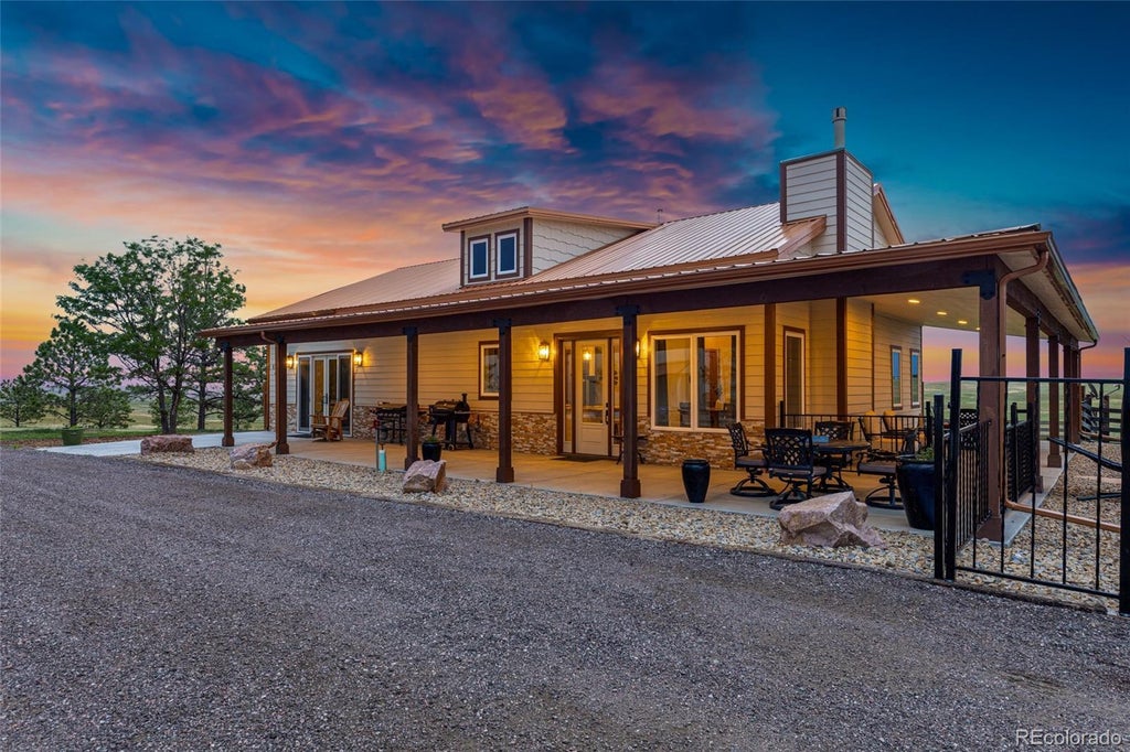 Here is the piece of paradise you have been waiting for! Incredible main floor living in this newly built ranch style home. The estate sits on 105 acres just off Hwy 24. Every detail has been thought of and incorporated into this property. The high ceilings and chefs kitchen are just the start. The custom cabinets and countertops will take your breath away. The large living area will be great for entertaining indoors if you ever need to. Primary suite has stunning views of the meadows and untouched beauty to the east. The en-suite bath will not let you down with oversized walk in custom shower, double sinks, vanity area and huge closet completes the home. This is where the fun really begins outside is where most of the time will be spent. Wrap around covered porch to the west is a great way to start of finish your day with unobstructed views of Pikes Peak. The most unbelievable water feature with water falls, river and a bridge leads you to a covered open sided grain silo with fire pit to enjoy the full outdoor living experience. Large fenced and fully grassed backyard area for kids, pets and games. This ranch has all the outbuildings needed. Starting with the 100X40 insulated shop with heat. The shop has oversized doors on both ends for easy parking of all the toys. All concrete floors additional bath and shower. 4 stall barn with concrete tack and hay area. 4 box stalls and outside pipe runs complete with sand. Giant 3 sided machine shop with greenhouse addition to have room for all the tractors, equipment and trailers. Property is on the grid however if ever wanted or needed there are 2 propane generators that run the well, house and shop. All 3 propane tanks are included. This property is one of a kind and has everything and more! Make sure you have a couple of hours to take in all this property has to offer.