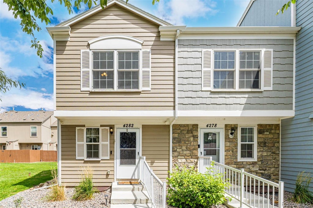 You'll LOVE this charming, well-kept townhome in Sunstone! Offering 2 beds & 2 baths, this beauty tastefully combines comfort and convenience. The inviting interior showcases a neutral palette and wood-look flooring with plush carpet in all the right places. With a fireplace as the focal point, the seamlessly flowing living & dining room exudes warmth and character. The kitchen boasts stainless steel appliances, ample white cabinetry, a pantry, and a 2-tier peninsula with a breakfast bar. Two well-appointed bedrooms await upstairs! The primary bedroom has access to the Jack & Jill bathroom. Let's not forget the finished basement! Featuring a large closet and a bathroom, making it ideal for a 3rd non-conforming bedroom or family room space as well. The sliding doors from the living area open to the private yard, where you can relax or enjoy BBQ! A cozy deck, artificial turf, and an attached storage closet complete the picture. The unit also includes an assigned parking space. PLUS! This gem is just in front of the Community pool and near the playground. Minutes away from schools, shopping, dining options, entertainment, and highways. Don't miss this opportunity!