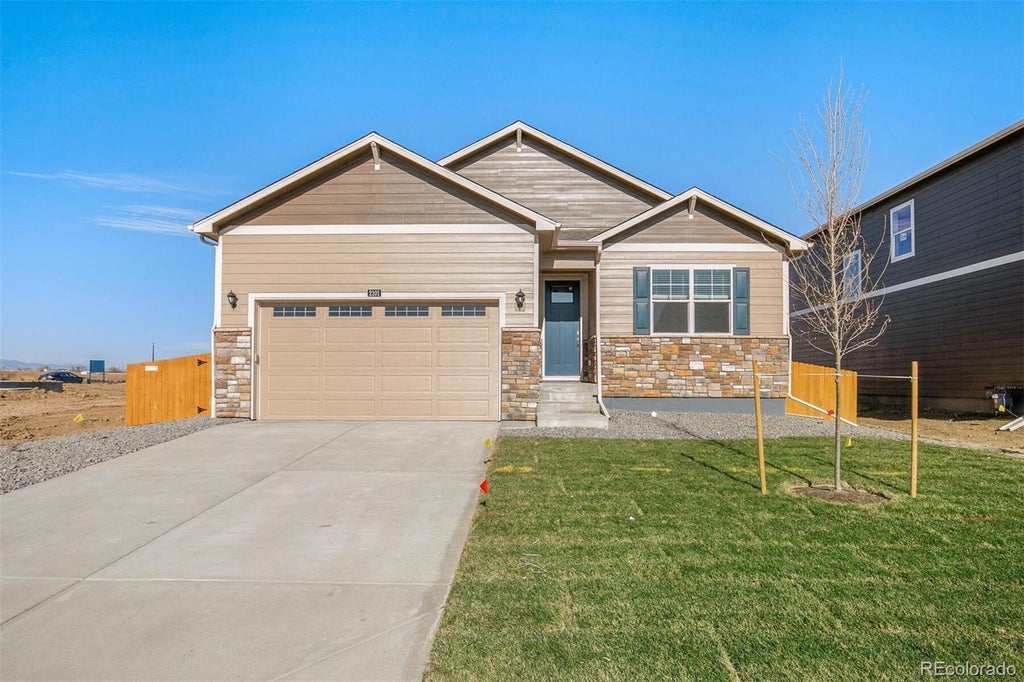Backs to open space. Quality built ranch plan is your perfect new home! Open Great room, kitchen and nook, make for easy living. Light and bright decor features White cabinets with crown molding, granite countertop, subway tile backsplash and extensive plank flooring on most of the main floor give you that welcome home feeling. This beautiful home is in the prestigious Douglas County School District! Includes an extensive list of features such as Stainless range, microwave and dishwasher, 2 panel interior doors, 8' front door, front yard xeriscape landscaping, 8' tall garage doors plus Smart home features like keyless entry, video doorbell, garage door control, lighting, thermostat and smart speaker. This home has room for everyone! ***Estimated Delivery Date: November. Photos are representative and not of actual property***