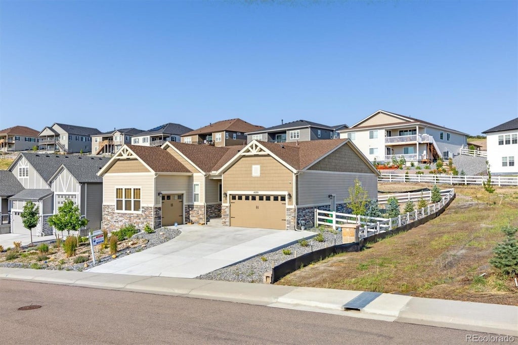 Crystal Valley Ranch living at its finest! This home features one level living! This Daniel floorplan from Richmond American offers an inviting floorplan and upgrades throughout. The front of the home offers two bedrooms, perfect for family or guests, as well as a private, spacious study. The well-appointed gourmet kitchen was meant to impress with its eat-in center island, quartz countertops, and upgrades such as a stainless steel double oven and gas cooktop. Enjoy the added convenience of the the tech center off of the kitchen as well as the large patio in the backyard. The open floor plan boasts 9-foot ceilings throughout. Completing this exceptional home is a large 3-car garage. Full unfinished basement to finish the way you would like to!