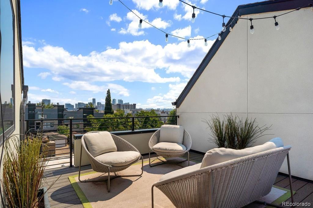 $30K PRICE REDUCTION!!! Urban luxury meets modern convenience in this fully furnished, tri-level Jefferson Park townhome. This 2-bed, 2.5-bath home features 1,606 sq ft of contemporary living with an open-concept main floor, wide-plank white oak hardwood floors, gas fireplace, and a chef’s kitchen with quartz countertops, stainless steel appliances, and a large island—perfect for entertaining or relaxing at home. Upstairs, two spacious bedrooms each include a private full bath, ideal for guests, roommates, or remote work setups. The primary suite boasts a spa-inspired bathroom with a twin-sink vanity and a large walk-in shower for added comfort and luxury. Enjoy the convenience of an attached 2-car garage with storage, and the true highlight: an expansive rooftop patio with stunning views of the downtown Denver skyline—your private perch for coffee at sunrise or cocktails at sunset. The rooftop is also hot tub–ready, giving you the option to create your own open-air spa retreat. Offered fully furnished, this turnkey home is move-in ready. Located in the heart of Jefferson Park with a Walk Score of 89, you’re just steps from neighborhood favorites like 2914 Coffee, Sexy Pizza, Jefferson Park Pub, Sweet Action Ice Cream, Curry Grill, and Safeway, with downtown, LoHi, and I-25 just minutes away. A rare opportunity to own a stylish, low-maintenance retreat in one of Denver’s most vibrant and walkable communities.