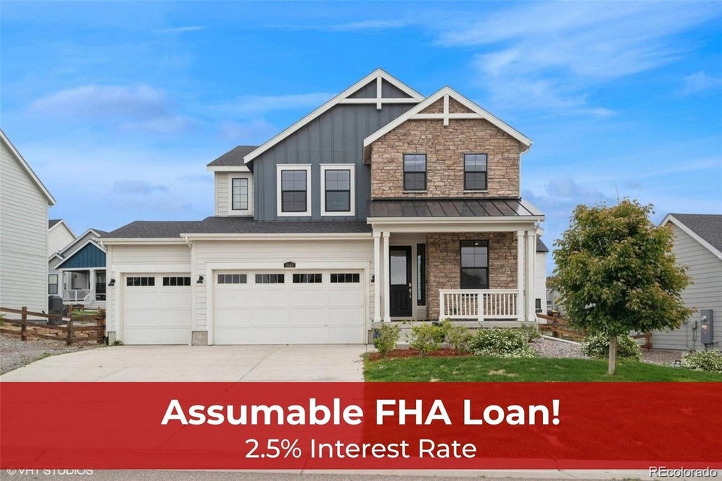 FHA Assumable Loan! Welcome to your stunning 4-bedroom, 3-bathroom home with a spacious 3-car garage and a full unfinished basement—perfect for future expansion or storage! This beautifully upgraded residence was built by Lennar in 2020, features an open-concept layout designed for modern living. Enjoy sleek quartz countertops, stainless steel appliances, and 9-foot ceilings that create a bright and airy feel throughout. The upper level offers thoughtfully placed bedrooms, including a generous primary suite with a walk-in closet and spa-like bathroom. Additional highlights include multiple walk-in closets and a covered patio ideal for outdoor entertaining. A rare opportunity awaits with an assumable FHA loan at an incredibly low 2.5% interest rate—making this home even more affordable for qualified buyers. Located in a vibrant community with resort-style amenities, you'll enjoy scenic walking trails, parks, a community pool, fitness center, and clubhouse—all just a short stroll from your front door. This move-in-ready home truly has it all!