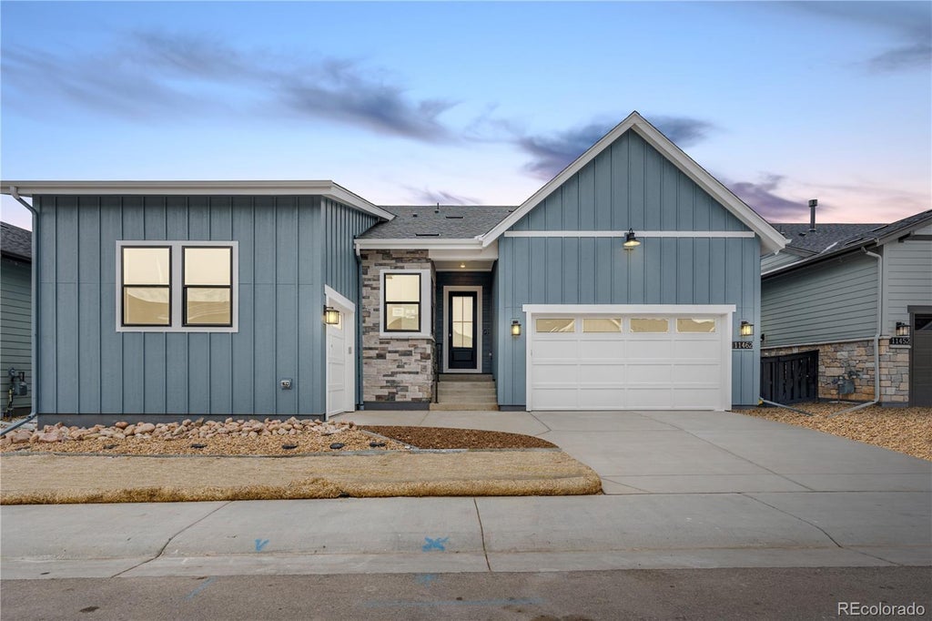 Beautiful one-story home in the desirable Solstice Community. Solstice is surrounded by Chatfield State Park on 3 sides of the community and acreage parcels on the 4th side. This home has 4 bedrooms, 4 baths, finished basement with wet bar, fireplace with full height tile surround, covered patio, and 3-bay split garage. Design finishes include Evoke luxury plank flooring in Astoria/Tiercel, MSI engineered stone counter tops in New Carrara Marmi, horizontal iron railings, and Yorktowne cabinets in White Icing and Earl Grey. Please contact a community representative for details. The Mirabelle Metropolitan Districts provide various services to the property and in addition to the estimated taxes, a $40 per month operations fee is imposed.