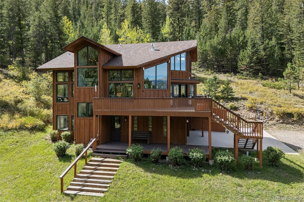 **OPEN HOUSE this SATURDAY, October 11th from 12:00 -2:00 PM** Set on nearly twenty acres abutting Roosevelt National Forest, this mountain modern retreat captures the essence of refined mountain living with thoughtful updates, captivating views, and a sense of seclusion just minutes from the town of Estes Park. The property enjoys a year-round creek, meadowland vistas, and a wraparound deck newly painted and designed for seamless indoor-outdoor living, complete with a hot tub for quiet evenings under the stars. Inside, over 2,000 square feet of living space reflects a 2020 renovation that balances modern luxury with rustic character. The great room showcases natural light and inviting views, while a den offers a cozy space for reading or rest. The upstairs loft provides flexibility for an office or guest sleeping quarters. The primary suite is a true sanctuary with its fireplace, spa-worthy five-piece bath, and Japanese soaking tub that frames the valley setting beyond. A three-car heated garage adds convenience and practicality, while the flat, grassed yard provides rare usability in a mountain setting—ideal for young explorers or four-legged companions. Thoughtfully curated as a retreat, the property can be offered partially furnished and fully stocked with essentials, making it an exceptional second-home opportunity. Daily encounters with elk and abundant wildlife add to the sense of wonder. Only ten minutes from the heart of Estes Park, with its vibrant shops, dining, and trailheads, this residence presents an unmatched opportunity to live in harmony with Colorado’s natural beauty while enjoying the comforts of a fully modernized home.