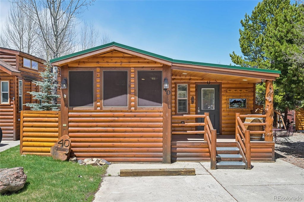 Welcome to your cozy mountain escape in the heart of Tiger Run Resort with majestic mountain views and lifestyle galore! This move-in-ready log home is set on a rare oversized corner lot in Tiger Run Resort, offering room to expand into a larger unit. Enjoy mountain living with a covered front porch and a private back deck—perfect for grilling or relaxing. The easy-to-maintain side yard provides plenty of space for outdoor dining, a fire pit, or even a swing. Inside, the spacious living room features rustic wood plank ceilings and flexibility to create multiple seating or sleeping areas. The bright eat-in kitchen boasts granite tile countertops and stainless appliances. You'll also find a full updated large bathroom and a cozy king-size bedroom with built-in storage. A separate storage shed adds convenience and ample extra storage. New heat tape added and new exterior stain. You will not want to leave this charming 53-acre gated community just 4 miles from historic downtown Breckenridge and its renowned ski resort. Tiger Run offers unbeatable amenities: including a 12,000-square-foot clubhouse with an indoor heated pool, two hot tubs, an owner's lounge, a new community laundry facility, a workout room, and a 2023 updated arcade-style game room. Outdoors, you can take advantage of tennis and pickleball courts, a basketball half-court, sand volleyball, a firepit, a playground for the kids, and a large outdoor pavilion perfect for family gatherings and community, Just minutes to the Colorado Trail, Blue River bike path, and endless hiking and biking opportunities. Tiger Run Resort offers year-round events like Jeep tours, wine & cheese nights, movies, community cookouts, and more! As a special bonus, Tiger Run Resort is exempt from the short-term rental moratorium, presenting a rare opportunity to own in a vibrant mountain resort community for your own enjoyment or investment opportunity! Don’t miss out on this incredible chance to own a slice of paradise!