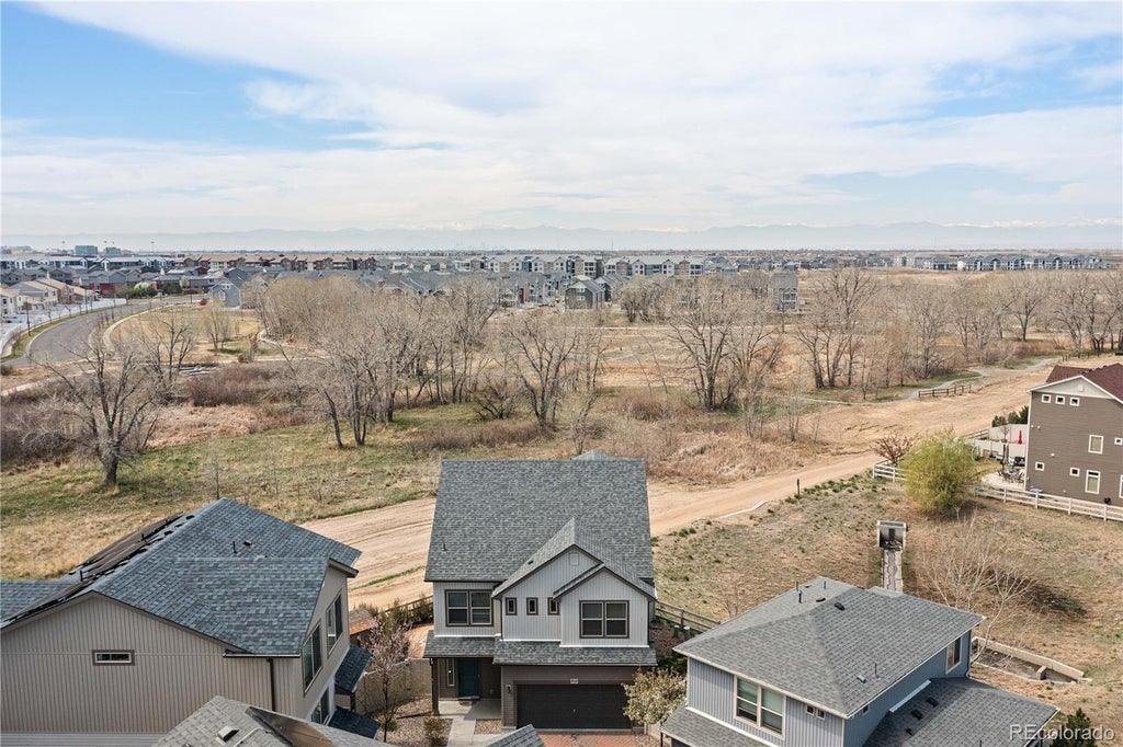 This is a rare opportunity. Home perfectly positioned on a premium lot with just two neighboring properties and quiet surroundings far from noisy, and air-polluted roads. Enjoy peaceful living with scenic greenbelt views and southern exposure that fills the home with natural light year-round—perfect for gardening or simply bright, cheerful interiors. There are no HOA fees for this area. Unlike new construction in the area, this property already offers a fully landscaped, low-maintenance, fully fenced backyard, saving you thousands in time, cost, and effort. The spacious patio is ideal for entertaining, while mature evergreens provide year-round greenery. An 80 sq. ft. storage shed adds convenience, and you’ll never need to worry about front yard upkeep or snow removal—it’s all handled for you. Inside, the open floor plan flows from a modern kitchen with a large island into a welcoming living area. The unique third-floor bonus level—rather than a basement—offers flexible space for a home office, gym, or recreation room. The primary suite features a dual-sink vanity, oversized shower, and large walk-in closet, while two additional bedrooms each have walk-in closets. Other features include carpeted bedrooms, central air, and a 2-car attached garage. Built in 2018, this energy-efficient home includes modern windows, HVAC, and insulation. Its location offers quick access to the recreation center, First Creek Park, golf course, shopping, dining, and the 61st & Peña Light Rail Station, making travel to Downtown Denver or DIA simple. The nearby bike path enhances your connection to the outdoors, and the area’s excellent water quality is free from the unhealthy chemicals found in some of the Denver Metro areas. More info available at request. This is a rare opportunity to own a move-in-ready, energy-efficient home on a premium lot with greenbelt views, no HOA, and low-maintenance outdoor living.