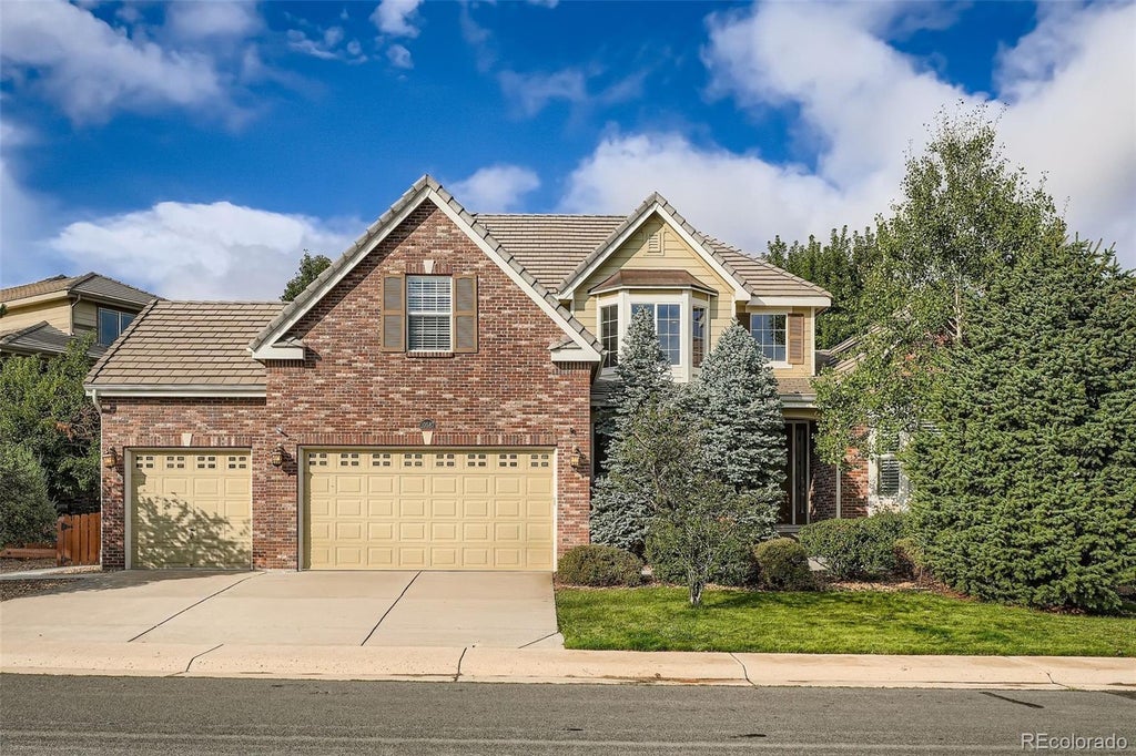 Welcome home to a space that instantly feels warm, welcoming, and cared for. Every detail has been thoughtfully maintained, creating a home that blends everyday comfort with timeless style. Step inside to find beautiful cherry wood floors, a bright open layout, and a main floor office with built-ins and French doors that make working from home easy. The formal dining room is perfect for holidays and dinner parties, while the spacious living room with its soaring 20 foot ceiling and cozy gas fireplace opens right into the kitchen. You will love cooking here with stainless steel appliances, double ovens, a gas cooktop, a large granite island, and plenty of cabinet space. The main floor primary suite is a peaceful retreat with a luxurious 5 piece bath, soaking tub, and generous walk-in closet. Upstairs, there is a comfortable loft with a bay window and three additional bedrooms that work beautifully for family, guests, or hobbies. Outside, enjoy Colorado living at its best with a covered patio, professional landscaping, and an extended hardscape that wraps around the side yard, perfect for relaxing or entertaining. The full unfinished basement is ready for your personal touch if you ever want more space. Located in Meridian Village, this home offers access to scenic trails, nearby parks, and top-rated schools, all just minutes from shopping, light rail, and I-25. It is a home that truly feels loved and it is ready for its next chapter.