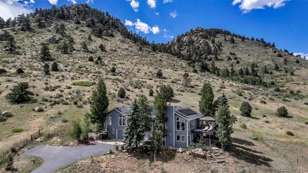Discover the perfect balance of peaceful mountain living and modern accessibility in Golden, where this exceptional home sits on a fully fenced lot with Jefferson County open space as your backyard neighbor, offering unparalleled privacy just 17 minutes from downtown Golden and 15 minutes to Black Hawk.. The sellers have invested $60,000 in premium solar panels, reducing monthly electricity costs to just $30/month, while their own well with a new well pump, a top-of-the-line water filtration system, and a top-tier softening system provides true self-sufficiency in this mountain retreat. This thoughtfully designed 4-bed, 4-bath home features a vaulted primary suite with luxurious 5-piece bath, electric fireplace, zero-entry shower, and skylight, plus an attached mother-in-law suite with kitchen and skylight that creates excellent potential for short-term rental income or multi-generational living. Smart home technology throughout includes storm tracking capabilities and weather monitoring tablets, keeping you informed and prepared in Colorado's changing mountain climate. Whole-house air conditioning and multiple heating options—including double-sided gas fireplaces and a wood-burning heater capable of warming the entire home—ensure year-round comfort, while outdoor adventures await at the nearby Centennial Cone Park West Trailhead for hiking and horseback riding, or on your private horse trail right behind the fence. The lower level offers two additional bedrooms, full tiled bath, and gas fireplace, while the main floor features a theater room, and the 3-car garage provides abundant storage enhanced by practical conveniences like nearby bus service, fire department, and easy Highway 93 access keeping Denver's opportunities within reach—truly representing an increasingly rare opportunity to own Colorado's mountain lifestyle with modern conveniences and energy efficiency built right in.