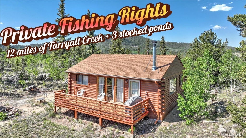 WOW! The Ultimate Mountain Retreat! Nestled in the Stagestop subdivision on a private road, this charming 660 sq ft cabin offers total privacy and seclusion among the towering pines. With 2 bedrooms, 1 bath, and an open floor plan, this cozy getaway blends rustic charm with modern comfort. Stunning tongue-and-groove ceilings and walls add warmth, while a wall of windows brings the beauty of the outdoors inside. Step onto the large wrap-around deck and take in the peaceful surroundings—this beautifully wooded lot is so inviting, you may never want to go inside! The open kitchen, dining area, and great room provide the perfect space to gather with family and friends. For outdoor enthusiasts, this property offers exclusive access to the Tarryall Fishing Club, featuring private, stocked lakes and streams, and is just five minutes from the National Forest for endless hiking and recreation. And when adventure calls, Breckenridge is only 60 minutes away. A true turnkey mountain retreat—don't miss this rare opportunity!