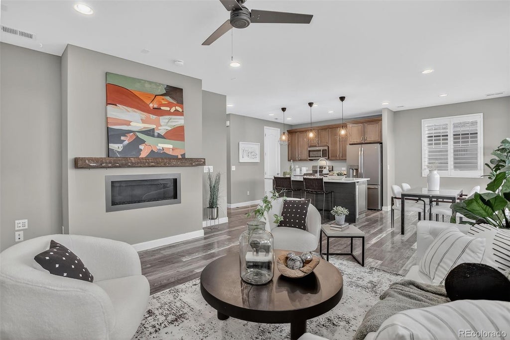 Welcome to this stunning home nestled in the highly sought-after Copperleaf community, where lifestyle and amenities are in perfect harmony. This meticulously designed residence is a true gem, offering an ideal blend of modern convenience and inviting warmth. As you step inside, you’ll be greeted by an open layout, allowing for seamless flow and abundant natural light. The heart of the home is undoubtedly the kitchen, featuring an expansive center island adorned with stylish pendant lighting and ample breakfast bar seating. Equipped with stainless steel appliances and a spacious pantry, this kitchen will inspire your culinary creativity. Adjacent to the kitchen, the charming eat-in dining area invites gatherings and cozy dinners, while the spacious living room with fireplace, thoughtfully positioned at the back of the home, offers a serene retreat for relaxation and unwinding after a long day. Venture upstairs to discover a sunny loft area that serves as the perfect versatile space for a playroom, home office, or another family room. The primary suite with an abundance of closet space, spa like bath with a double vanity, large shower and walk in closet is the perfect retreat. The upper level also has two additional well-appointed bedrooms and a full bath with shower / tub. Enjoy your upper level laundry room adding convenience to daily life. Step outside to your backyard oasis, this outdoor haven features ample space for lounging, play, and entertaining with a covered patio, mature landscaping and fully fenced for privacy. But that's not all—Copperleaf community offers a lifestyle that’s second to none with the community pool and clubhouse plus trails weaving through the neighborhood. Convenience is key, as this home is just minutes from E-470, and is in the Cherry Creek School District. This home in Copperleaf is not just a property; it’s a lifestyle waiting to be embraced. Don’t miss your chance to make this exceptional residence your own.