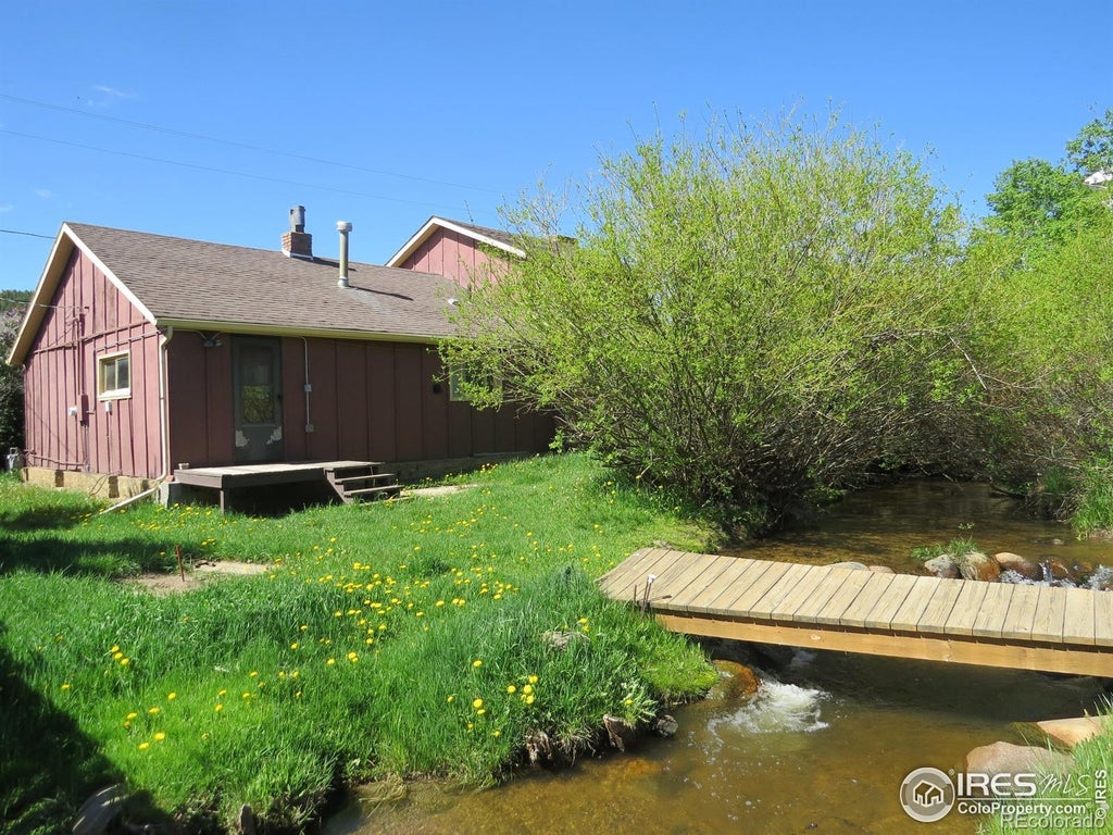 A river runs through it. Downtown Nederland home creek side, full year creek runs through the back yard. Double lot, south facing home. Zoned Neighborhood Commercial. 3 beds, 2 baths, wood floors refinished on the main floor. Walk to all the conveniences of town (NedGeneral, previously Salto, is just 1/2 block away) and feel privacy in a fully fenced yard, great for pets. Horseshoe pit is set up throwing across the creek, a glorious back yard. Newer washer&dryer. Easy to show, Realtor owned.