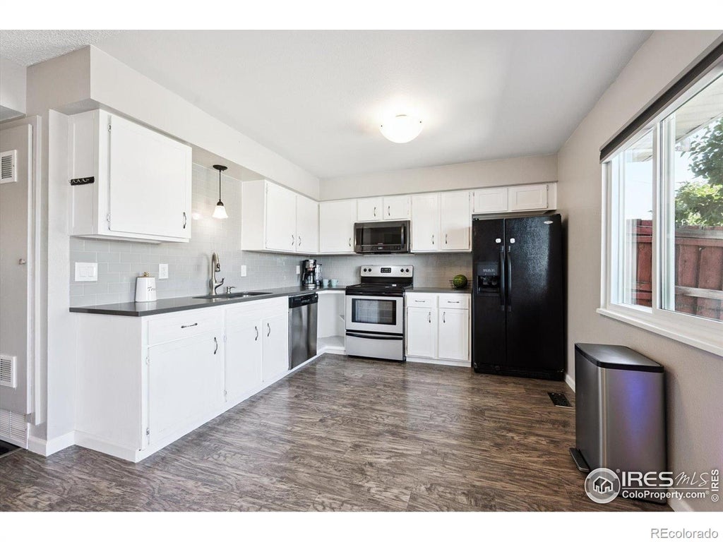 Gorgeous Park North Home with Fully Fenced Yard & 2-Car Carport Welcome to this beautifully updated home in the desirable Park North neighborhood! As you step inside, you're greeted by fresh interior paint and stylish laminate wood flooring throughout the main level. The spacious living room offers serene views of the adjacent greenbelt, while the open-concept kitchen impresses with quartz countertops, designer glass tile backsplash, and stainless-steel appliances. A bright dining area, convenient laundry room, and updated powder room with a modern vanity and designer tile complete the main level. Upstairs, the primary suite offers a peaceful retreat with a private ensuite bath featuring a large walk-in shower, updated vanity, and designer tile finishes. Three additional bedrooms share a full bathroom with a tiled tub surround, modern vanity, and designer tile flooring-plus a ceiling light with built-in Bluetooth speaker for added convenience. All bedrooms include newer ceiling fans for comfort year-round. Enjoy peace of mind with major system upgrades completed in 2024, including a new furnace, new central AC, electrical enhancements and upgrades, new carpet, and new interior paint. Storage is plentiful with built-in linen closets, a large under-stairs storage area on the main level, and the backyard storage shed. Superb Location: Step outside from the kitchen and dining area into your private, fully fenced yard-perfect for entertaining or relaxing. The yard features a newly poured concrete patio, low-maintenance artificial turf, and a storage shed. A gate leads directly to the detached 2-car carport, located just behind the home for easy access. Additional highlights include nearby guest parking and a prime location within walking distance to parks, trails, Hyland Hills Sports Complex, Water World, shops, restaurants, and cafes. Quick access to major highways makes commuting to downtown Denver a breeze.