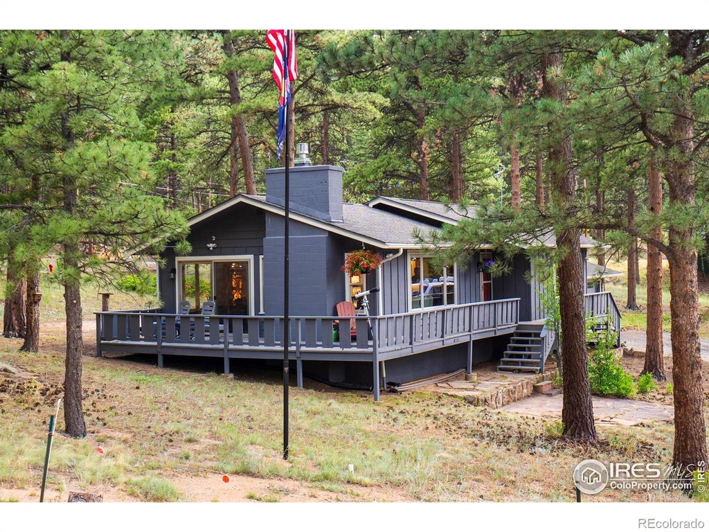 Located in desirable Hondius Heights, this single-level ranch rests on the north shoulder of Prospect Mountain. Peaceful and private, yet just minutes from downtown Estes Park and Rocky Mountain National Park. The 2-bedroom layout offers a vaulted great room with stone-clad gas fireplace, remodeled spa-like bath, and large windows that fill the home with light. Updates in 2024-2025 include new stainless appliances, new kitchen sink, faucet, & disposal, fully remodeled bath, upgraded fireplace, new washer/dryer, and new garage doors and openers. Roof, windows, and furnace are in good condition. Practical touches include a 2-car garage and spacious bedrooms with walk-in closets. The 0.74-acre lot allows RV parking and space for a future workshop. Outdoor living shines with two decks among mature pines, mountain views, and abundant wildlife. Offered furnished, including TV, wall decor, and most furnishings (exclusions list available).