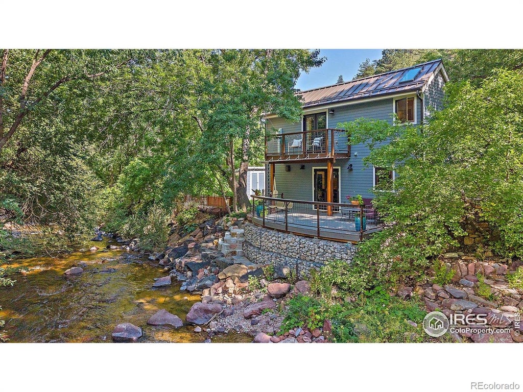 "Just minutes from Boulder, this Eldorado Springs retreat offers the perfect balance of mountain living and modern comfort. Perched just above South Boulder Creek, the home enjoys the rare luxury of natural creekside sounds that carry throughout the property, creating a calming backdrop for everyday life.Taken down to the studs and fully rebuilt in 2017, the home showcases thoughtful design and quality finishes throughout. The main level features an open floor plan where the kitchen, dining, and living areas flow seamlessly together, ideal for both everyday living and entertaining. The chef's kitchen is outfitted with butcher block countertops and KitchenAid appliances, while radiant floor heating brings year-round comfort.Step outside to an expansive deck overlooking the creek, perfect for hosting gatherings or simply relaxing as you listen to the water below. Additional highlights include irrigated raised garden beds, a drought-tolerant low-mow lawn, polished concrete outdoor bar seating, a new metal roof from 2017, and a reverse osmosis water filtration system.Upstairs, vaulted ceilings and skylights flood the home with natural light, enhancing the sense of openness and connection to the outdoors. Eldorado Canyon State Park is just down the road with world-renowned climbing, hiking, and biking, along with the historic Eldorado Springs pool that is uniquely fed by refreshing natural spring water."