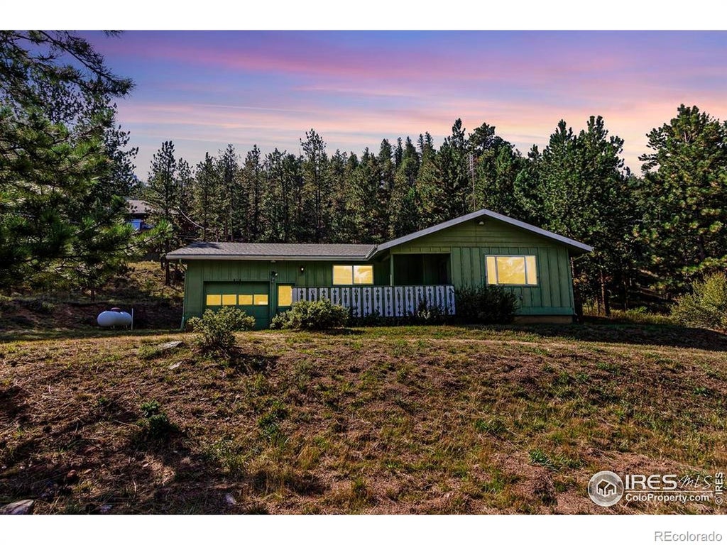 Welcome to your mountain retreat in the desirable High Pines neighborhood of Estes Park. The home is being sold in as-is condition, giving buyers a wonderful opportunity to personalize and update it to their own taste.Tucked among mature pines on a beautifully wooded 0.62-acre lot, this single-level ranch home offers the perfect combination of comfort, character, and convenience-just minutes from downtown Estes Park and Rocky Mountain National Park.Step inside to an inviting living room where large picture windows frame serene forest views and a classic stone fireplace creates a warm and welcoming centerpiece. The thoughtful layout flows easily, making it an ideal setting for everyday living or entertaining family and friends. A sunny enclosed porch expands your living area and leads directly to a spacious deck, perfect for enjoying morning coffee, summer barbecues, or peaceful evenings surrounded by the sights and sounds of nature. With mature pines providing shade and privacy, the outdoor spaces feel secluded yet remain easily accessible with paved road frontage and a level driveway.This well-designed home includes two comfortable bedrooms and two baths, including a light-filled primary suite with a walk-in closet and private half bath. Built in 1970, this 1,129 sq. ft. residence reflects both timeless mountain charm and functional livability. Double-pane windows, storm doors, and forced-air heating provide efficiency, while internet and cable options ensure modern connectivity. Whether you envision this property as a full-time residence, a weekend retreat, or an investment opportunity in one of Colorado's most beloved mountain towns, the potential here is endless.Don't miss your chance to experience the Estes Park lifestyle-quiet mornings among the pines, wildlife right outside your door, and endless outdoor adventures just minutes away.