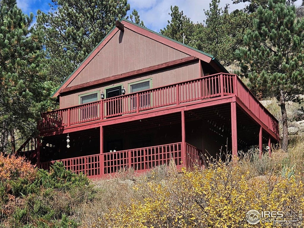 Charming mountain cabin on 2.61 acres which is located between Estes Park and Loveland off of Highway 43. Property backs to the National Forest. Well built 1977 cabin with 2 bedrooms and a loft (which can be used as a third bedroom). There are two nice bathrooms (one on the lower level and one on the main level). Main level ceilings are covered in beautiful wood planks. A quiet little stream across the road invites wildlife such as fox, coyotes, wild turkeys, elk, deer, and big horn sheep. You can enjoy watching the forest friends from your recently refinished wrap around deck off your upper as well as a nice deck on your lower level. Cabin has a metal roof as well as a wood burning fireplace between the kitchen and living area, which keeps the home cozy warm. Main heat source comes from the electric baseboard heaters. Washer and Dryer are fairly new and they stay with the home. Sellers willing to part with most furnishings in the house, if you are interested. Property also has a 4 x 6 shed for all of your equipment and toys! You wont' find a sweeter cabin than this one! Don't wait to see it! This 2.16 acre site has it's own water well with plenty of gpm to support all your needs. Septic vault.